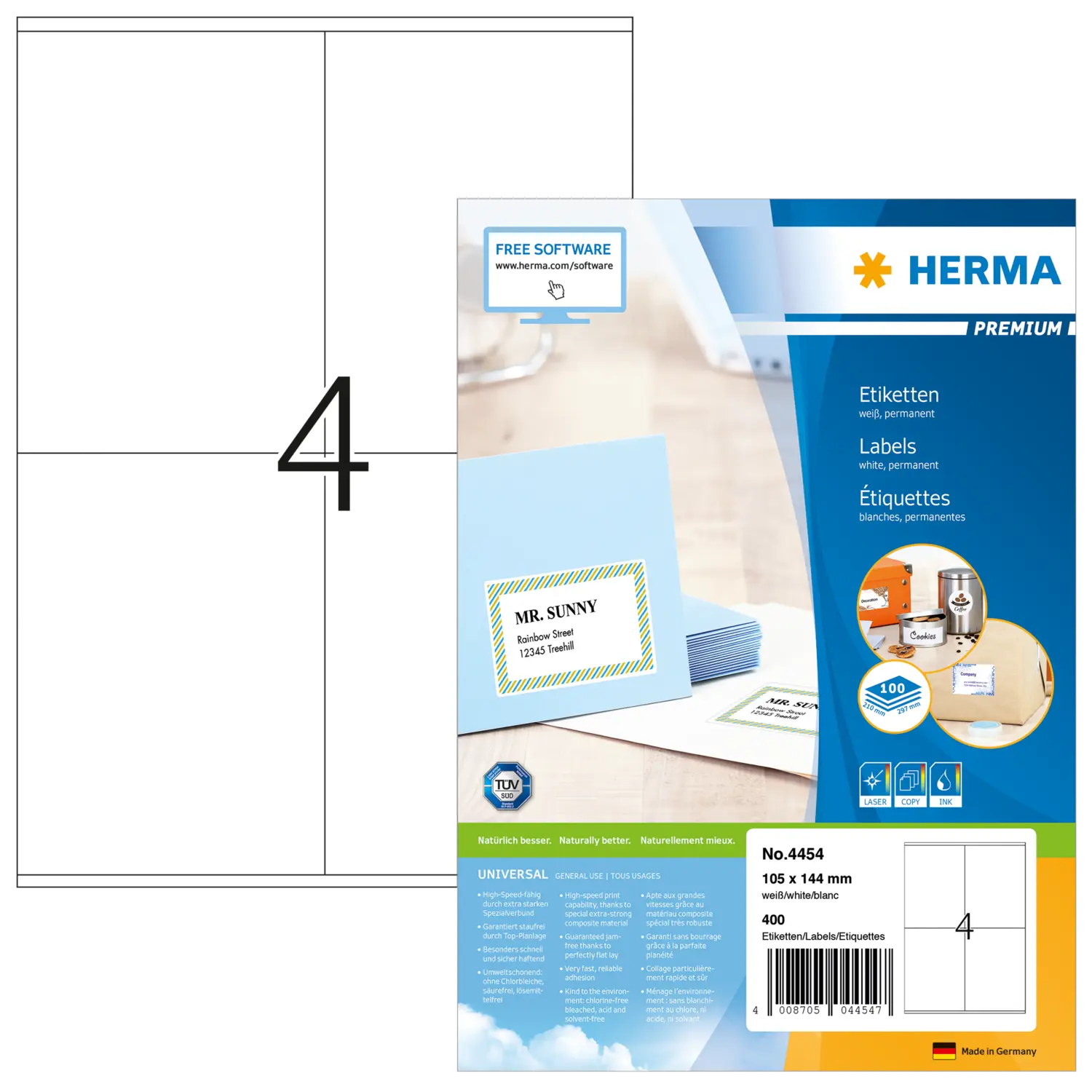 PREMIUM labels A4, 105 x 144 mm, white, permanent adhesion