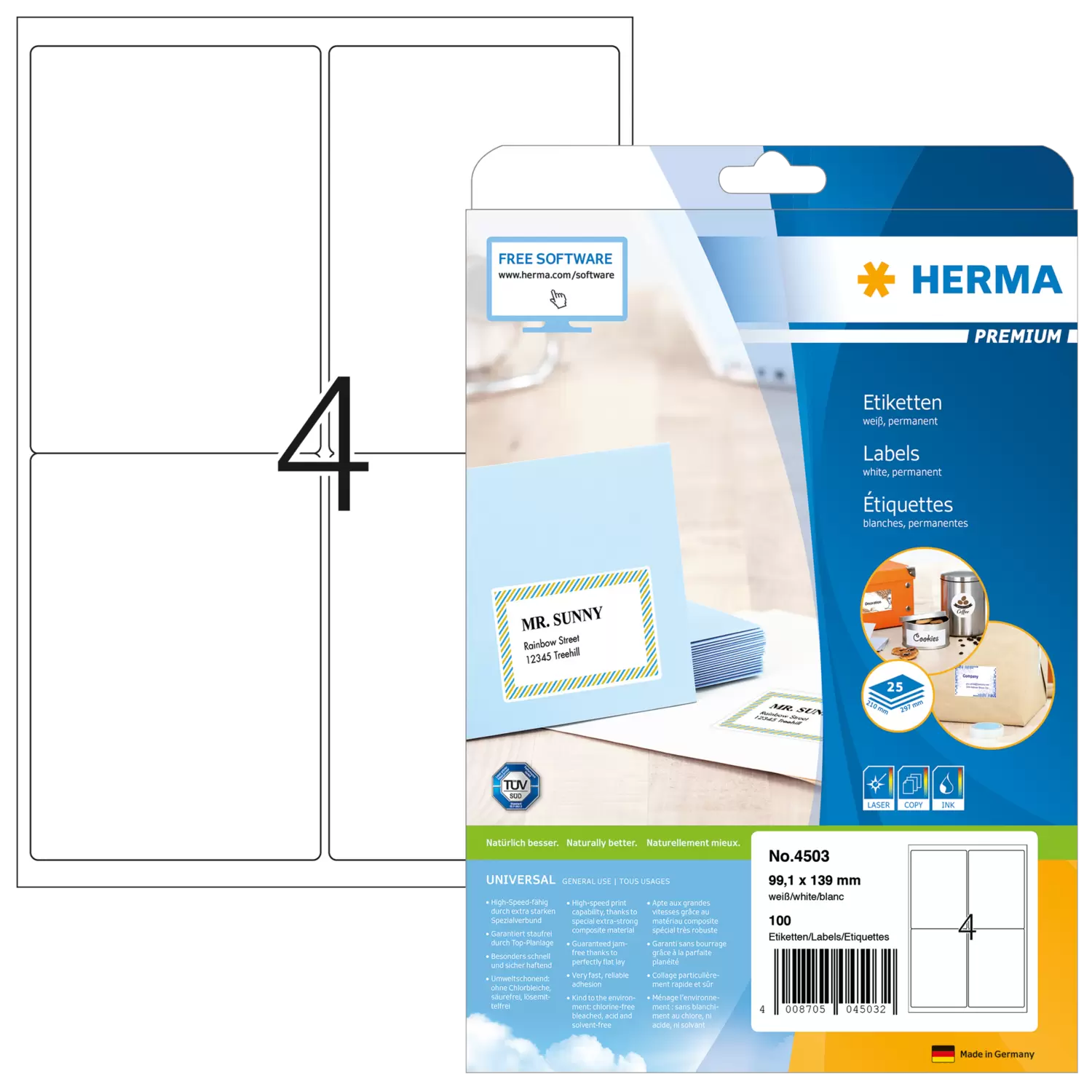 PREMIUM address labels A4, 99,1 x 139 mm, white, permanent adhesion