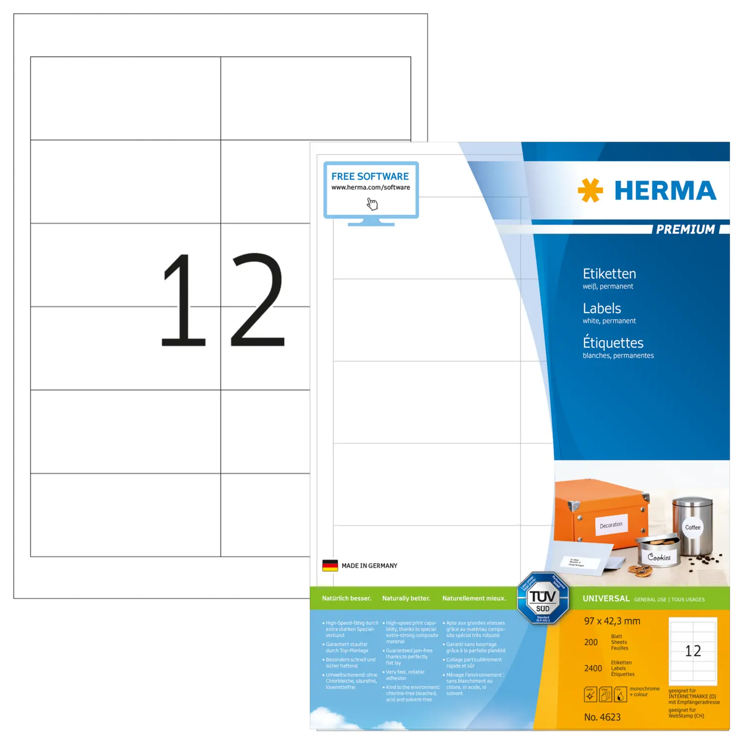 PREMIUM labels A4, 97 x 42,3 mm, white, permanent adhesion