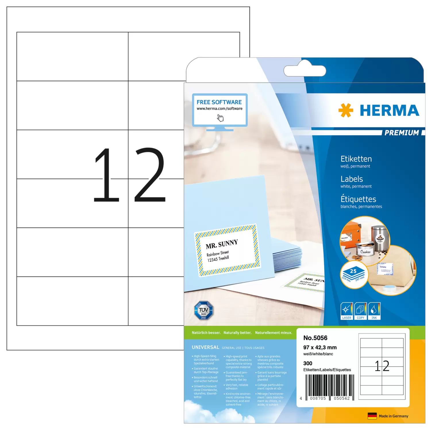 PREMIUM labels A4, 97 x 42,3 mm, white, permanent adhesion