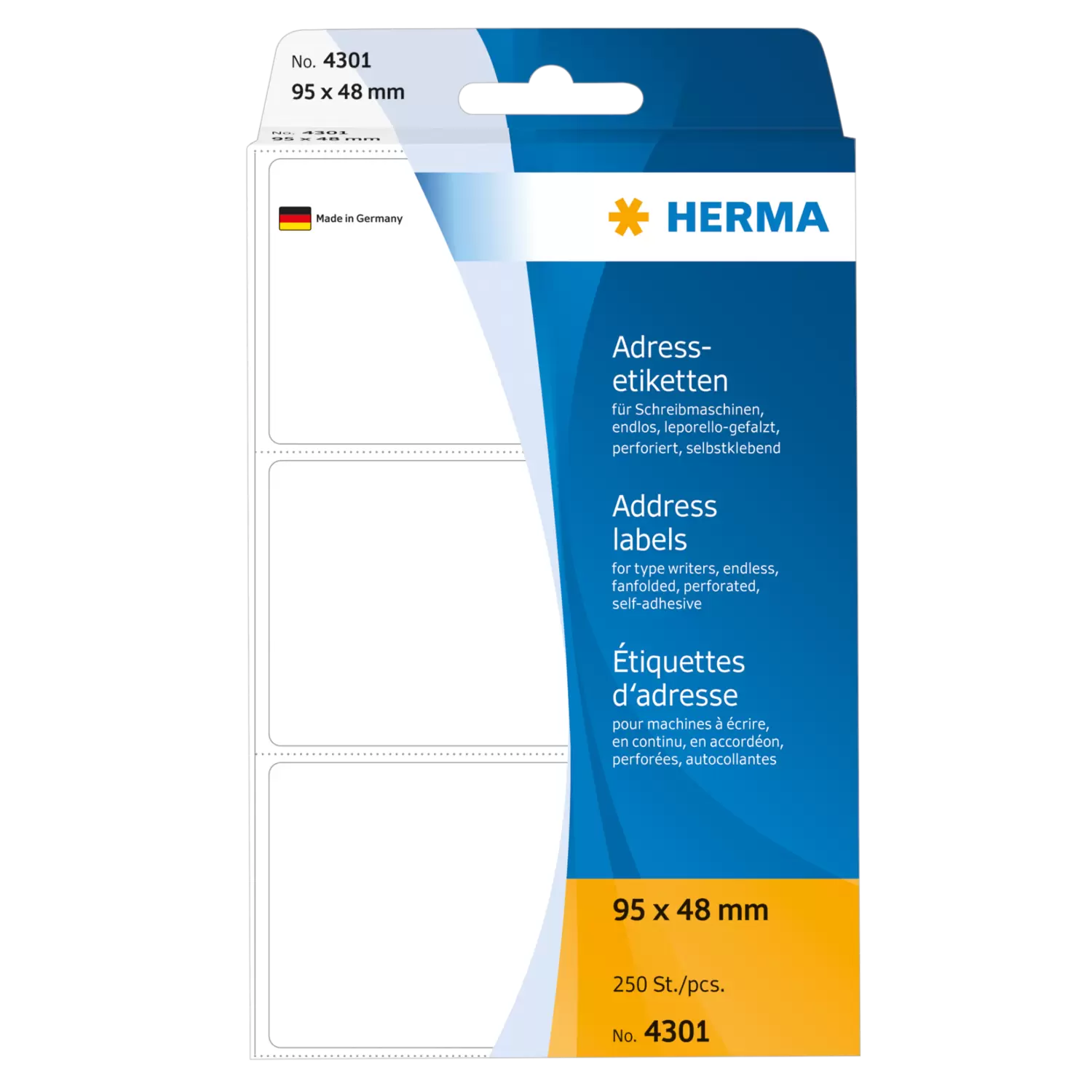 Address labels for typewriters, endless, fanfolded, 95 x 48 mm, white, permanent adhesion
