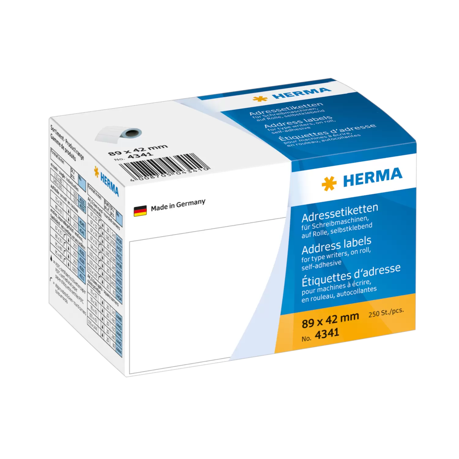 Address labels for typewriters, on rolls, 89 x 42 mm, white, permanent adhesion