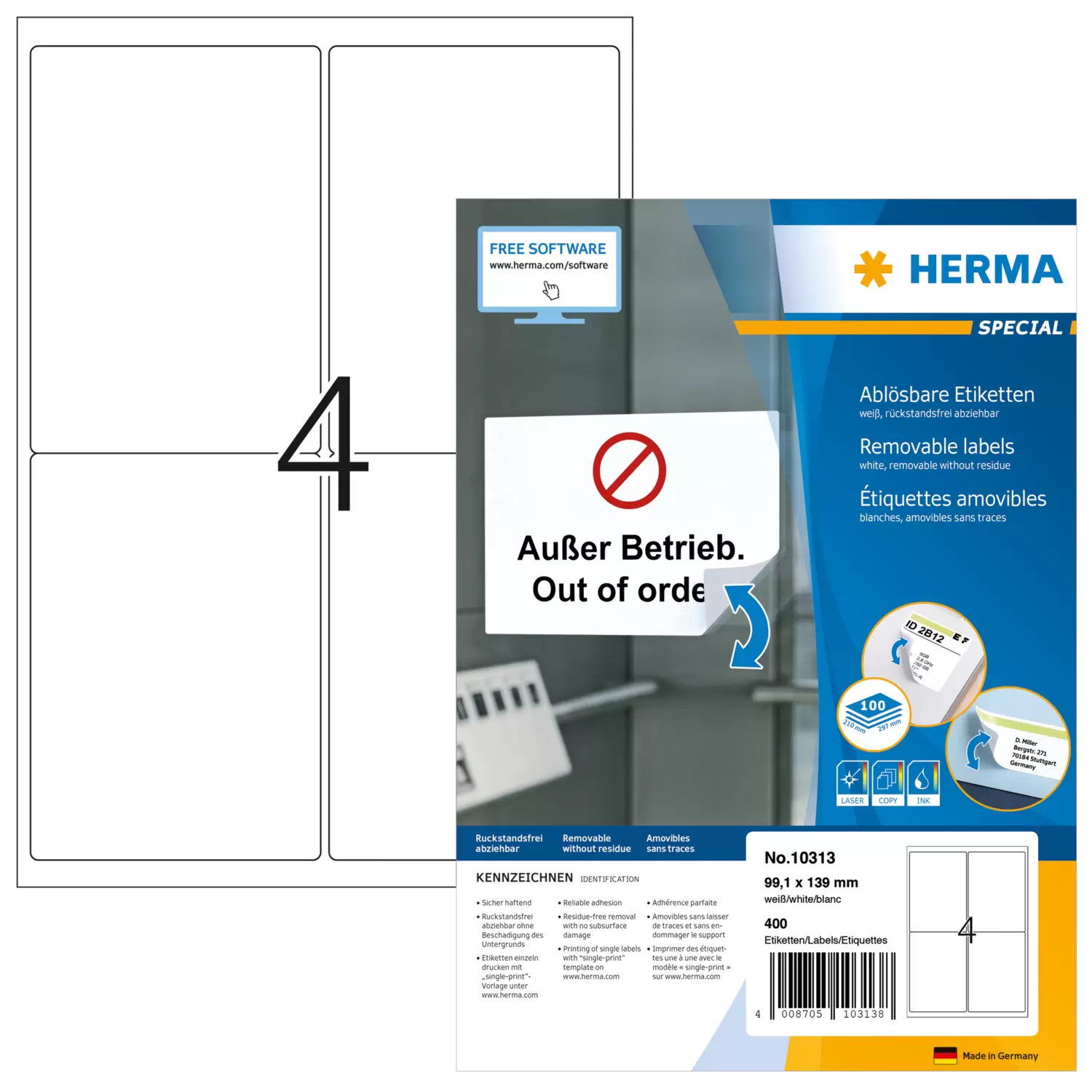 Removable address labels A4, 99,1 x 139 mm, white, opaque