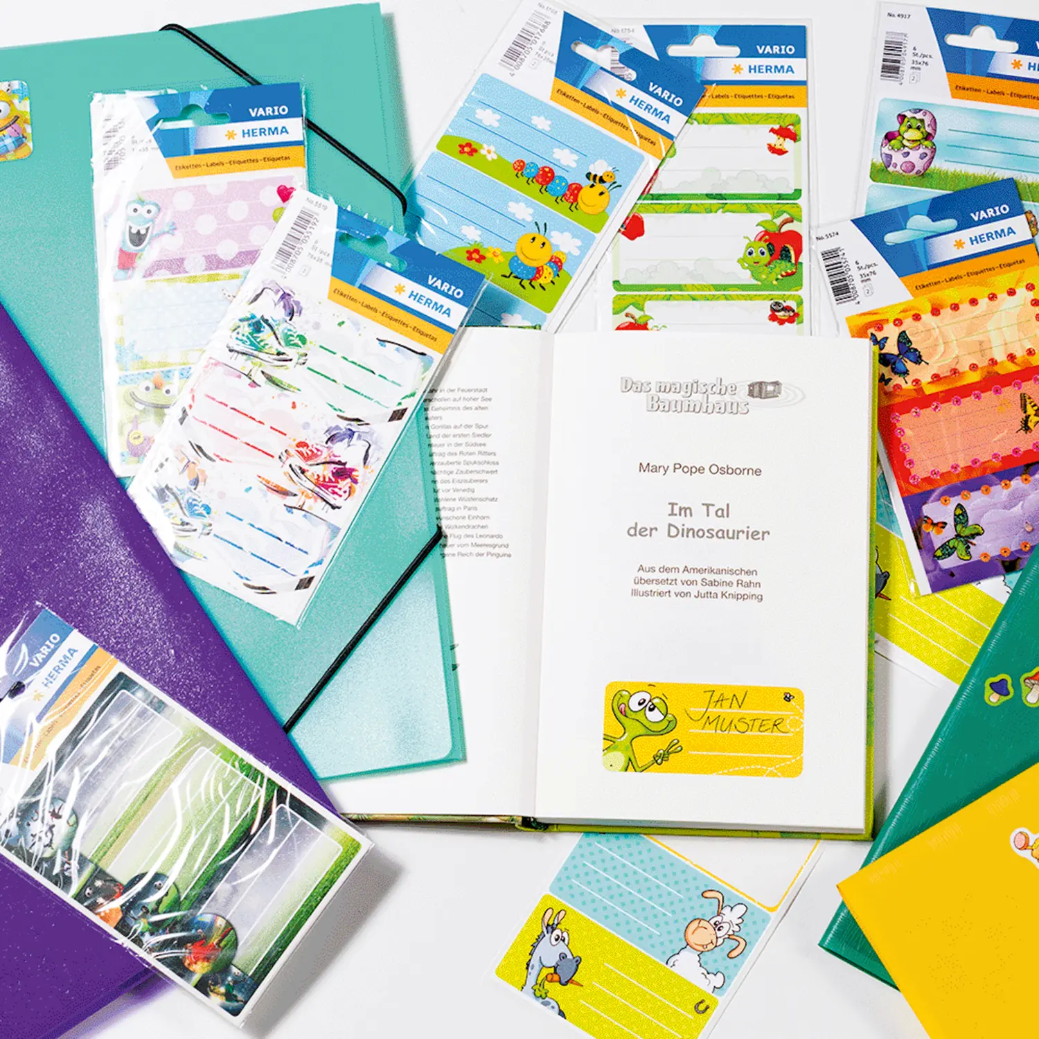 With these smart and colourful school labels made of writable paper from brand manufacturer HERMA, marking and labelling books and notebooks is really fun. The name stickers enable the child to be clearly identified, despite the fact that most of the booklets or book covers are identical within a class. The many different motifs and designs match the preferences or hobbies of the pupils. The name labels are particularly suitable for HERMA booklet covers made of plastic or paper covers.