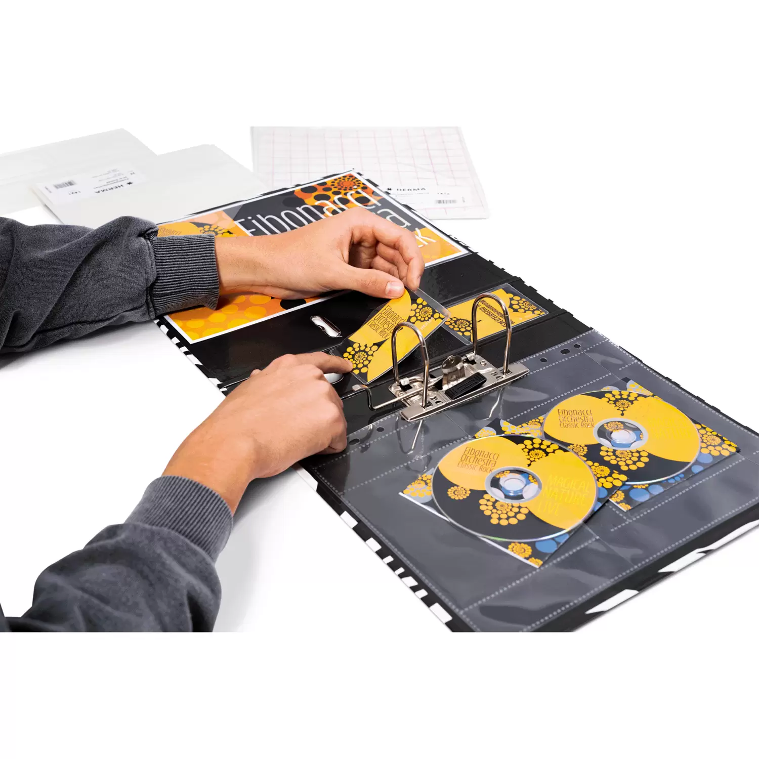 The practical extra pocket for sticking in albums, files and ring binders, offer and presentation folders: HERMA's transparent business card pockets. The pockets in the format 95 x 60 mm are made of crystal-clear polypropylene film and are ideal for cards of different types. The pockets are easy to attach, self-adhesive and adhere firmly to smooth surfaces. So business cards or other cards are always at hand. Simply peel off the backing paper, stick the pocket in the position you want, insert cards and use previously unused space wisely. Clever and practical.