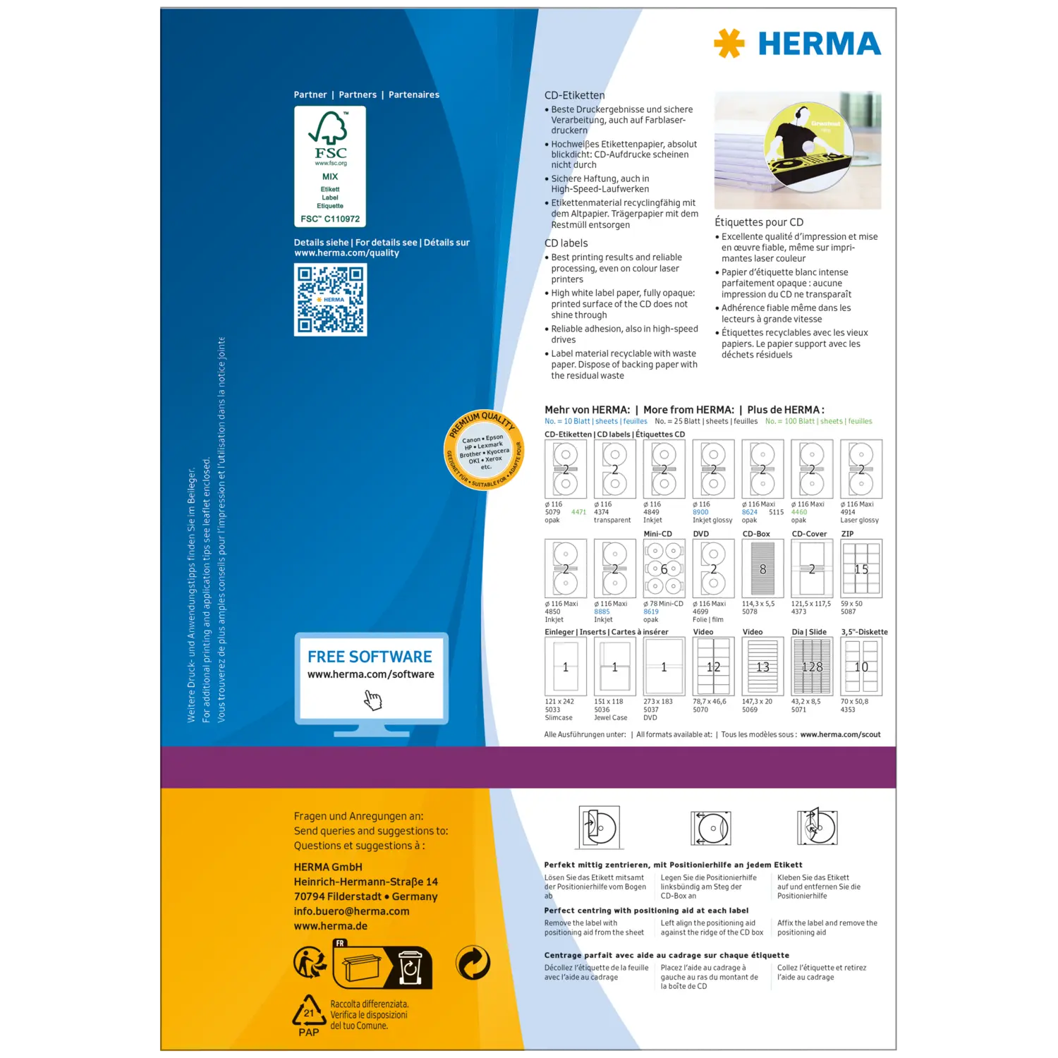CD labels Maxi A4, Ø 116 mm, white opaque, permanent adhesion