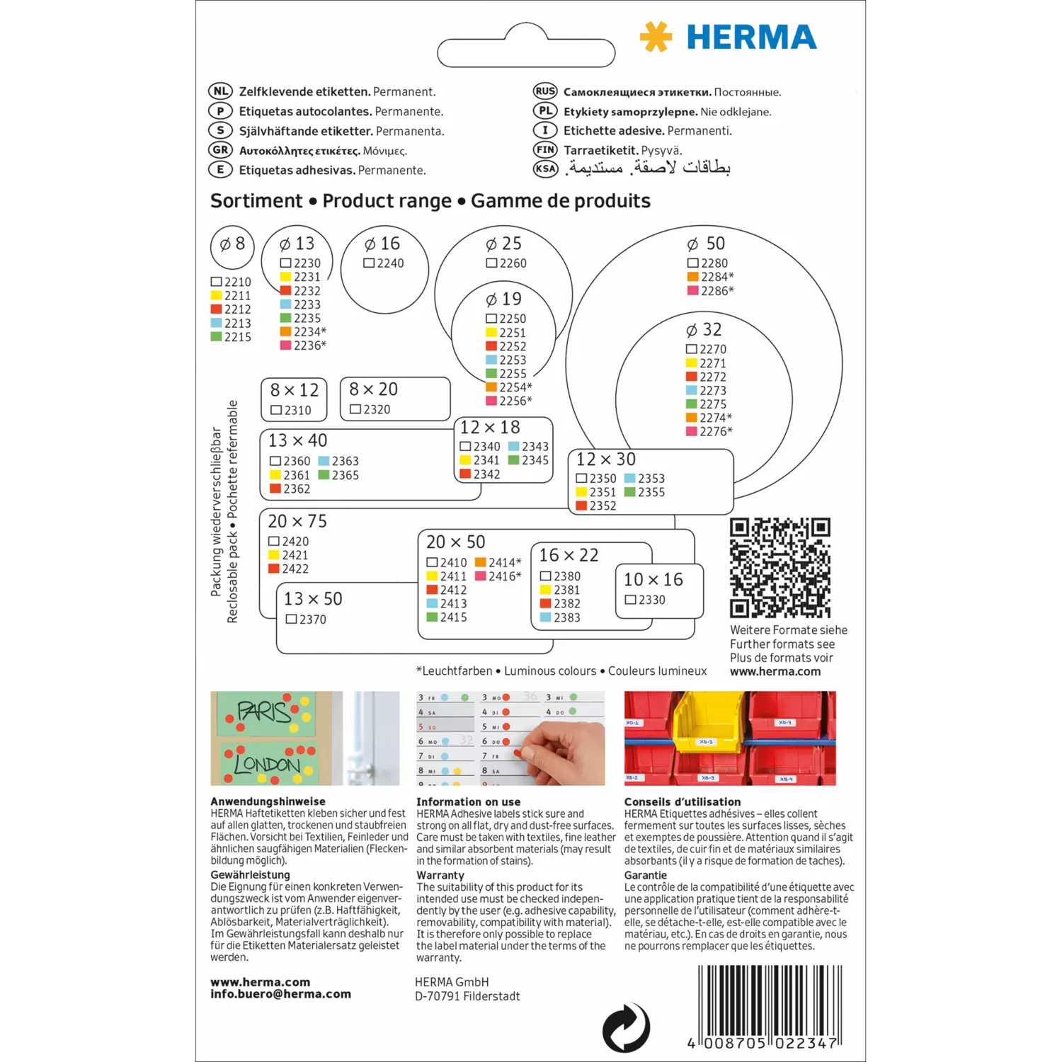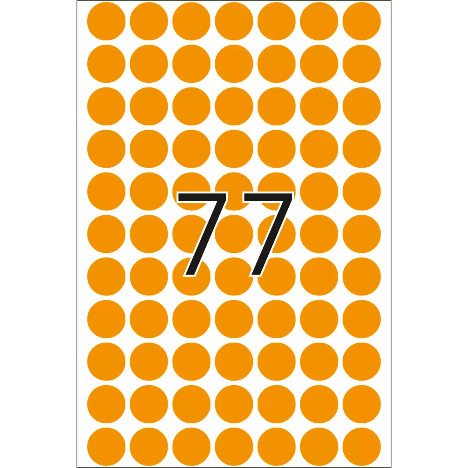 Multi-purpose labels / colour dots, Ø 13 mm, round, luminous orange, permanent adhesion, for hand le