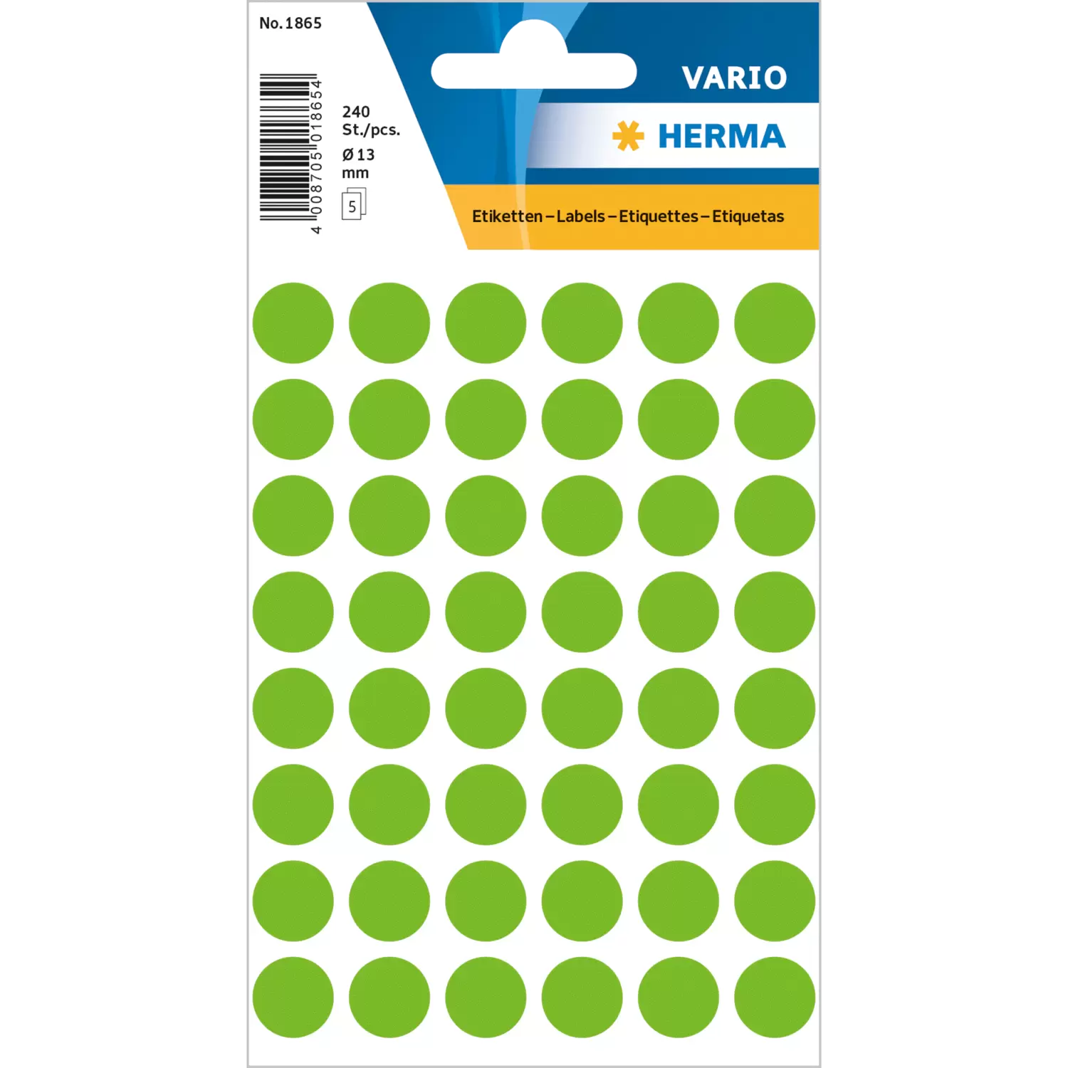 Multi-purpose labels / colour dots, Ø 13 mm, round, green, permanent adhesion, for hand lettering