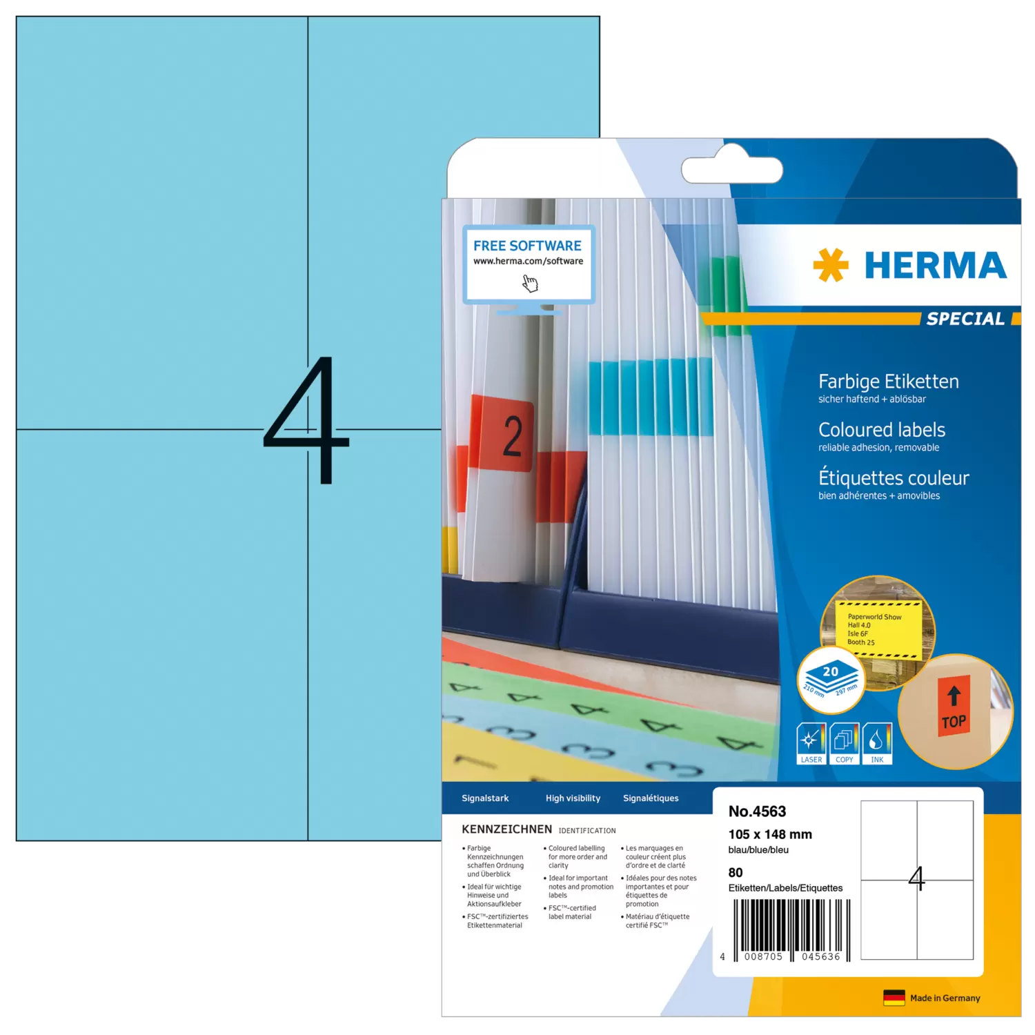 Coloured labels A4, 105 x 148 mm, blue, removable