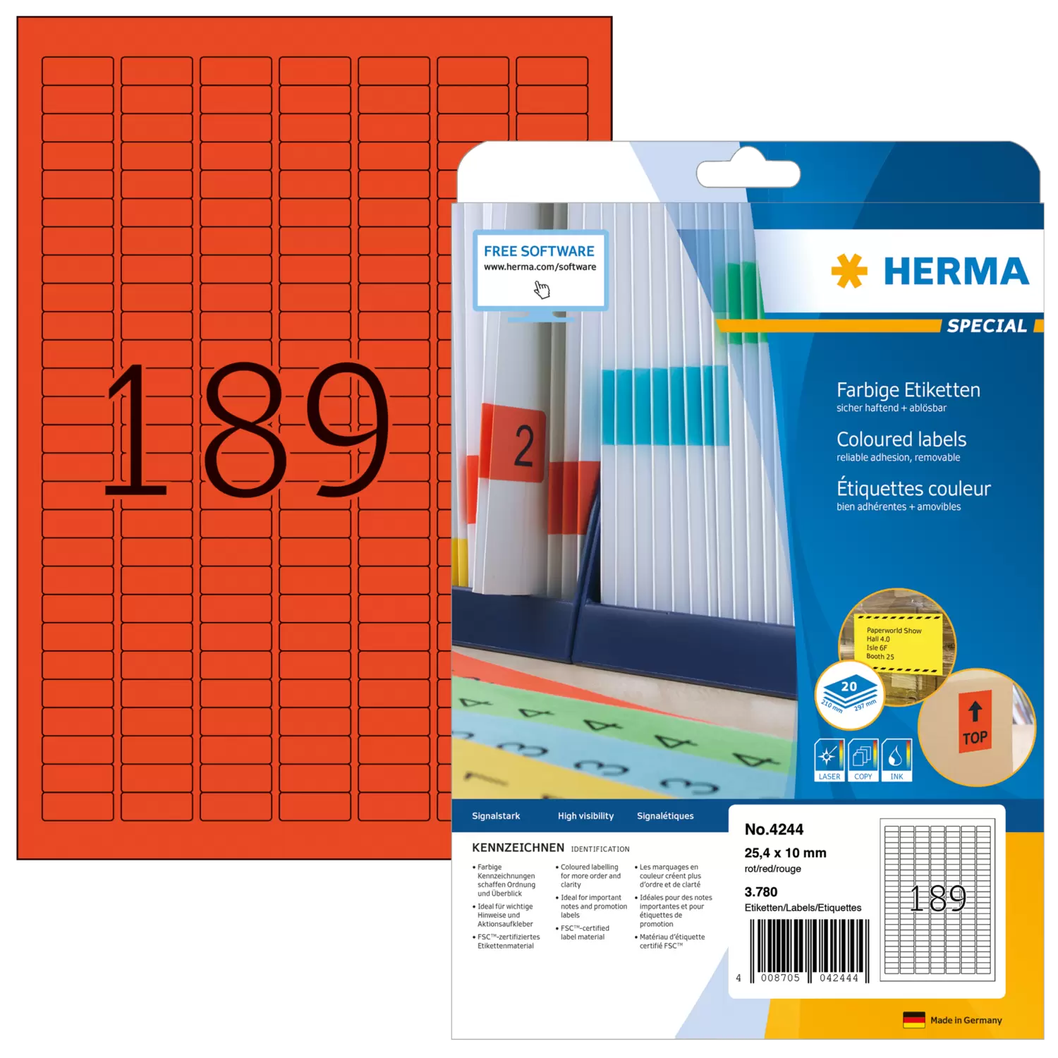 - Coloured labels create order and clarity. Also ideal for drawing attention to important information
