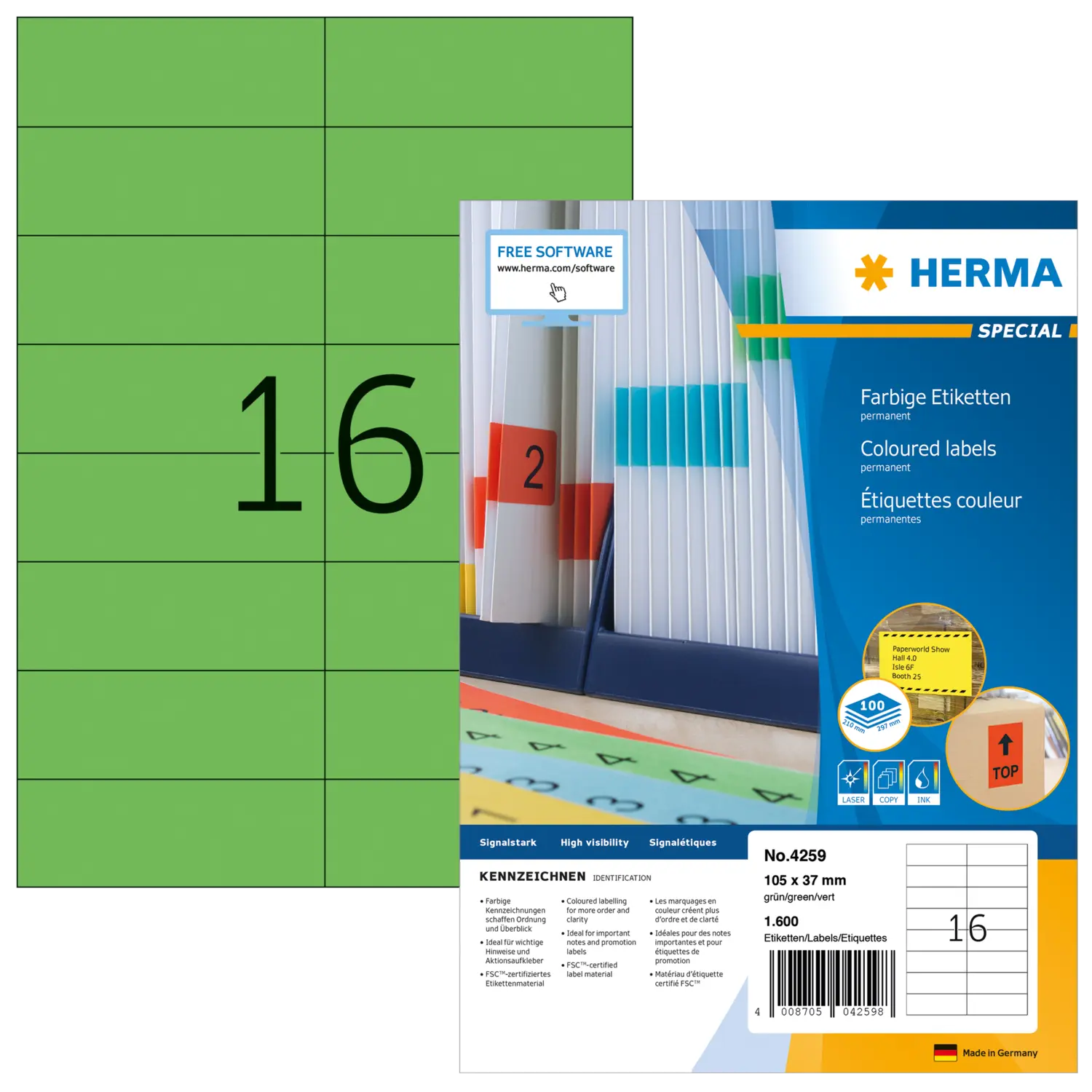 - Coloured labels create order and clarity. Also ideal for drawing attention to important information