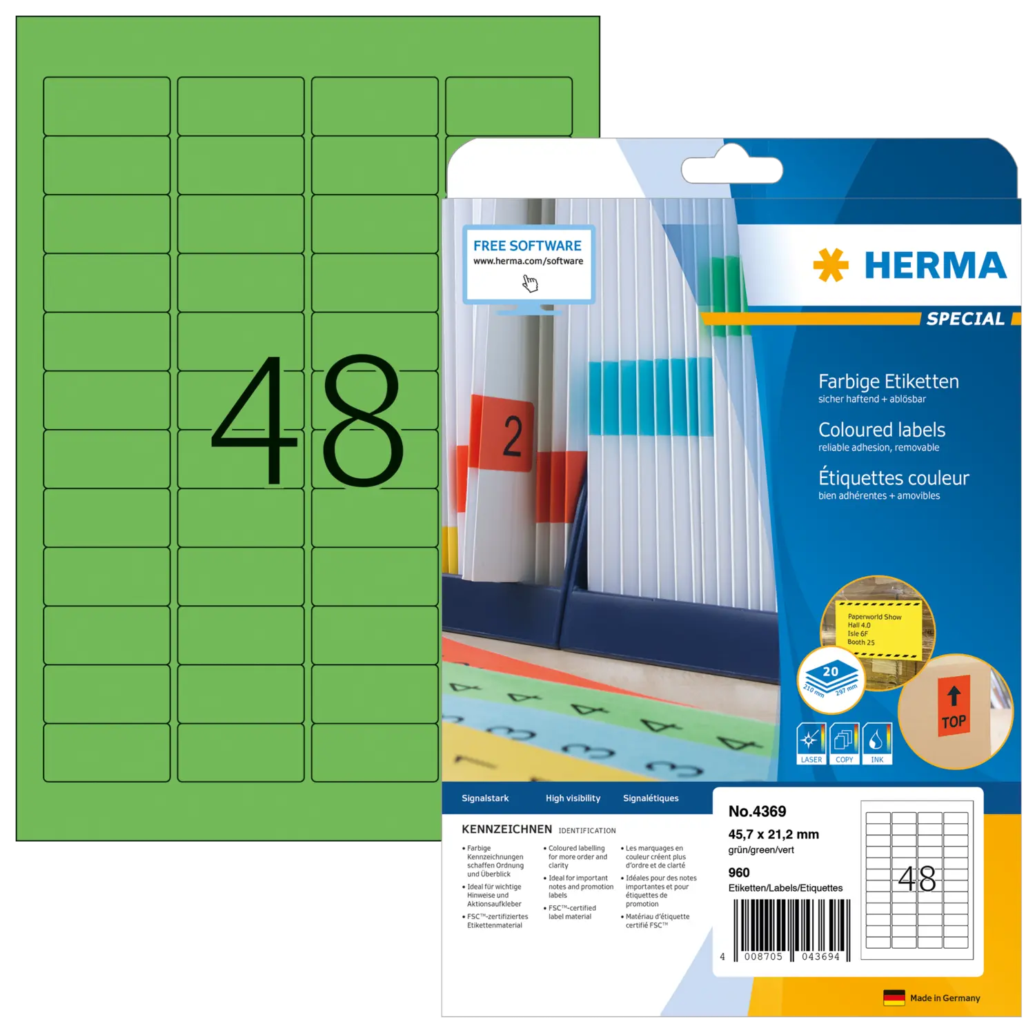 - Coloured labels create order and clarity. Also ideal for drawing attention to important information