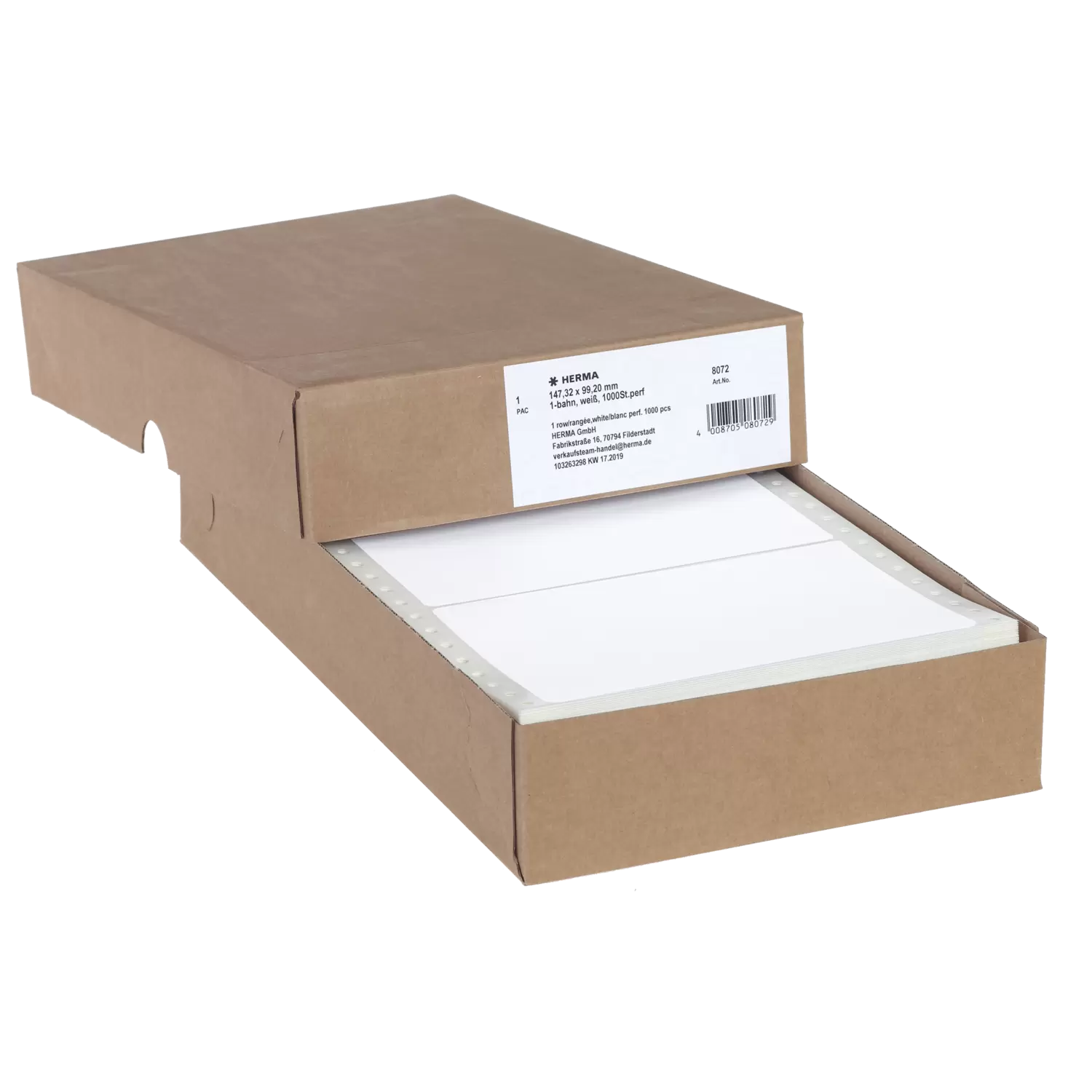 Continuous computer labels, 147,32 x 99,2 mm, 1 row, white, perforated, permanent adhesion