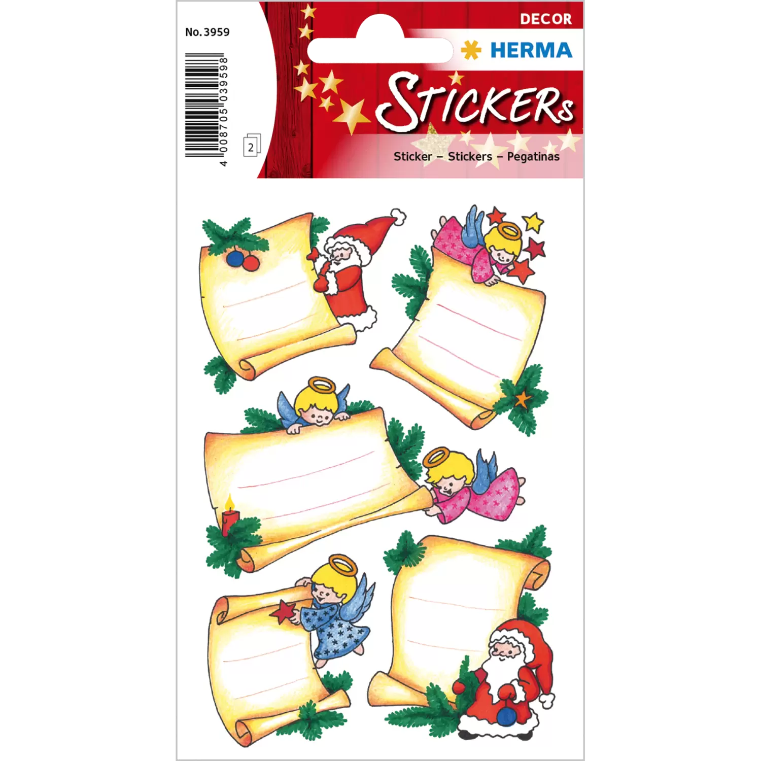 Self-adhesive decorative stickers, colourful printed with Christmas motifs. For decoration of presents, cards, or letters.