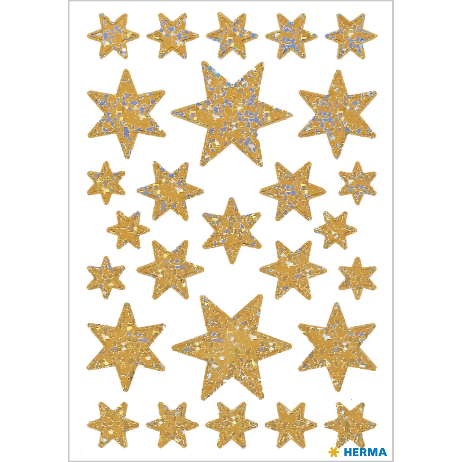 Self-adhesive stars for decoration and arrangements of presents, letters. Especially suitable for handicraft.