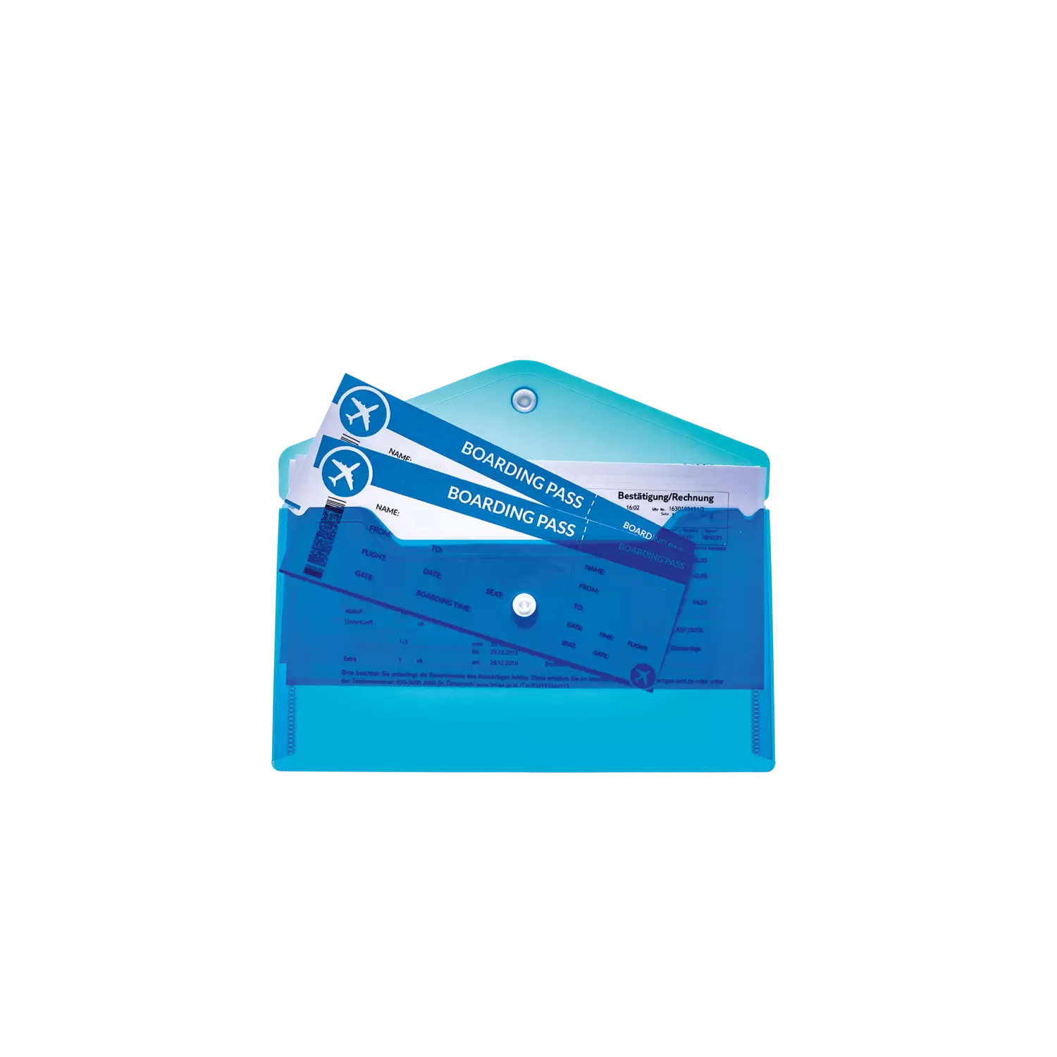 The practical HERMA Document Bag in DIN long format (22 x 12 cm) in dark blue is the multifunctional organiser for on the go, at home, at work, at school and much more. The handy folder is made of sturdy transparent polypropylene and is therefore resistant to dirt and moisture. Receipts, letters, travel documents, drawings or smaller utensils stay neat and tidy.