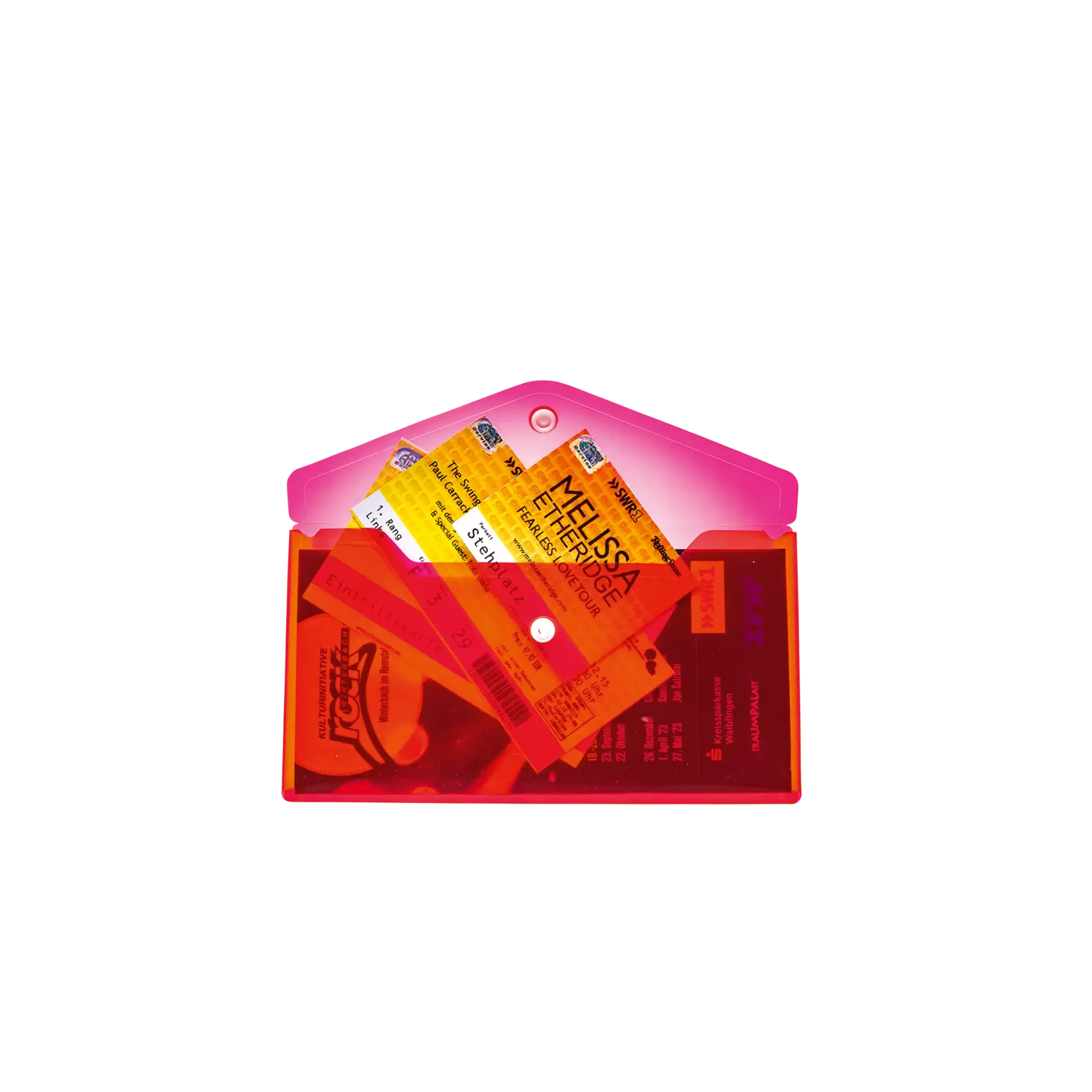 The practical HERMA Document Bag in DIN long format (22 x 12 cm) in red is the multifunctional organiser for on the go, at home, at work, at school and much more. The handy folder is made of sturdy transparent polypropylene and is therefore resistant to dirt and moisture. Receipts, letters, travel documents, drawings or smaller utensils stay neat and tidy.