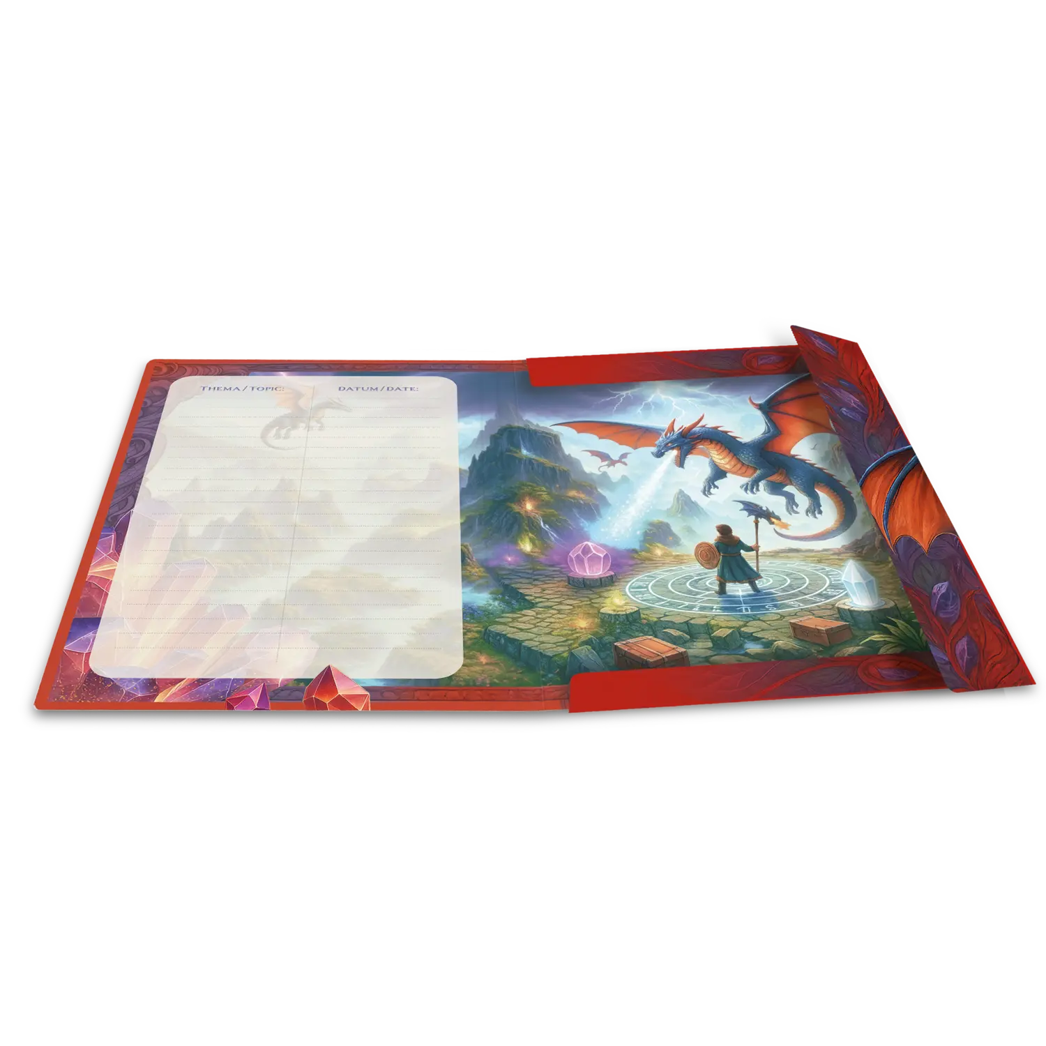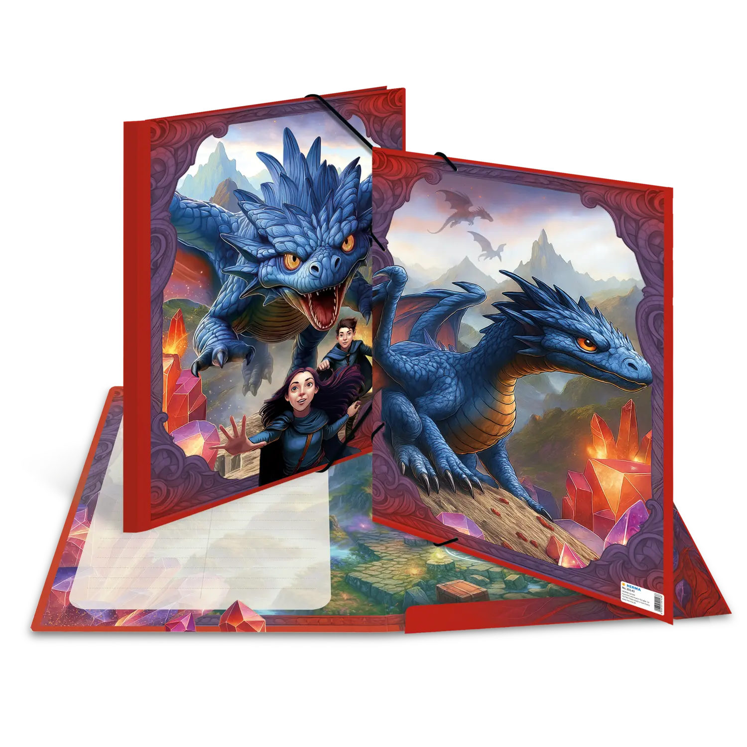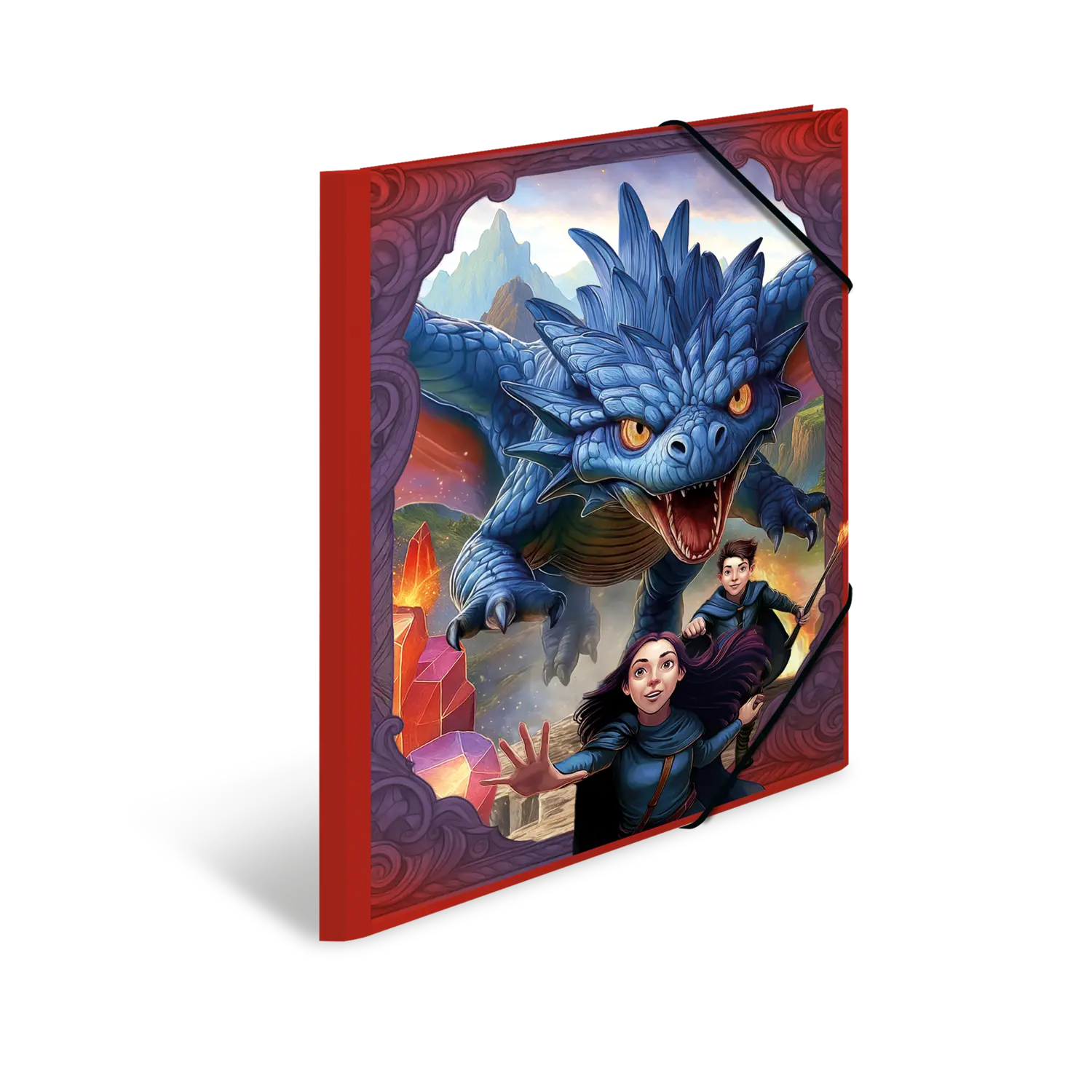 - High-quality elasticated folder with magical dragon motif