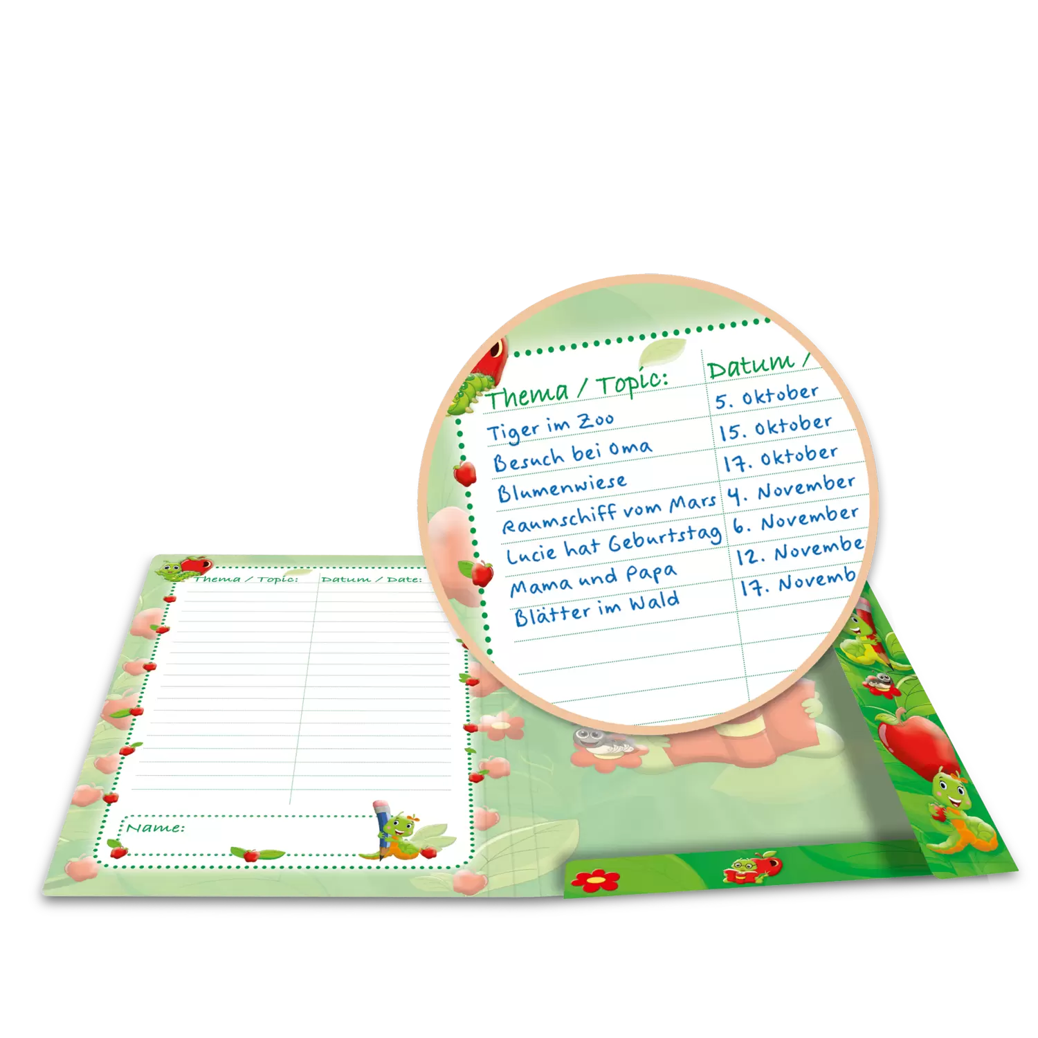 - Folder with motif "Fritz the Worm", made of sturdy cardboard