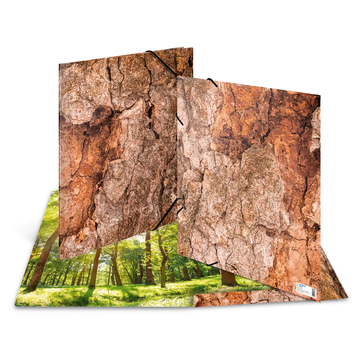 Nature is a master artist. Her overwhelming power and delicate beauty are on permanent display in cavernous gorges, towering mountains, endless rolling oceans and trees that touch the sky. HERMA's "Nature" deluxe elasticated folder series demonstrates this artistic balance of nature. They are adorned with rugged testaments to time that bear the brushstrokes of the ages. They are rough yet fragile, wild and unpredictable, and full of fine forms. They are an everlasting work of art, a fleeting moment, a glimpse into the age of eternal ice. The "Wood" elasticated folder shows the rough yet harmonious bark of an ancient tree. It has been furrowed and battered by wind and weather but remains steadfast and defiant. The natural shapes appear to melt into one another in a symbol of strength, fragility and everlasting life. A highlight in the study, in the office or on the shelf. The high-quality finish makes this elegant folder a true high-end product. It is a tribute to nature – the greatest artist of all.