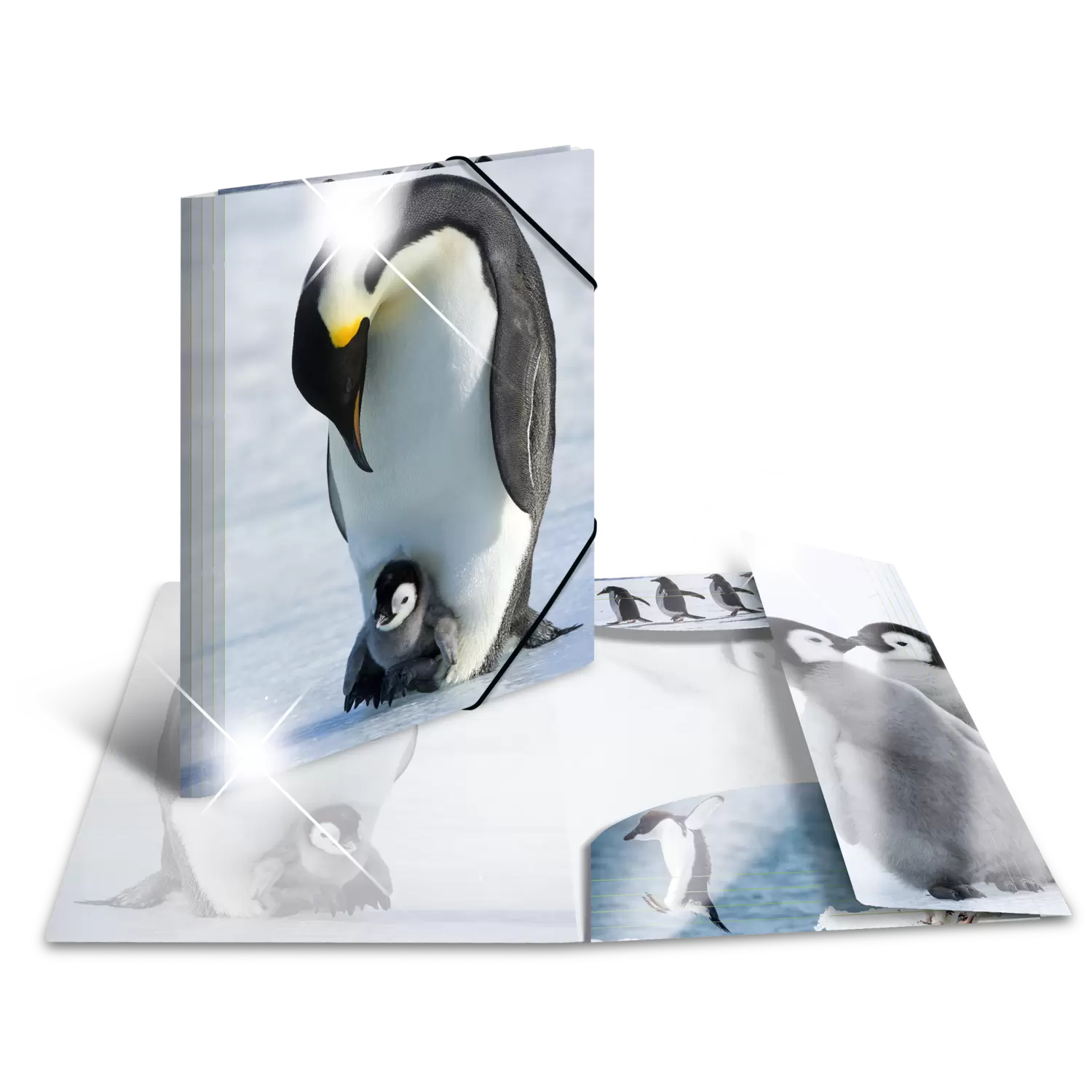 Elasticated folder glossy animals A3 PP penguins