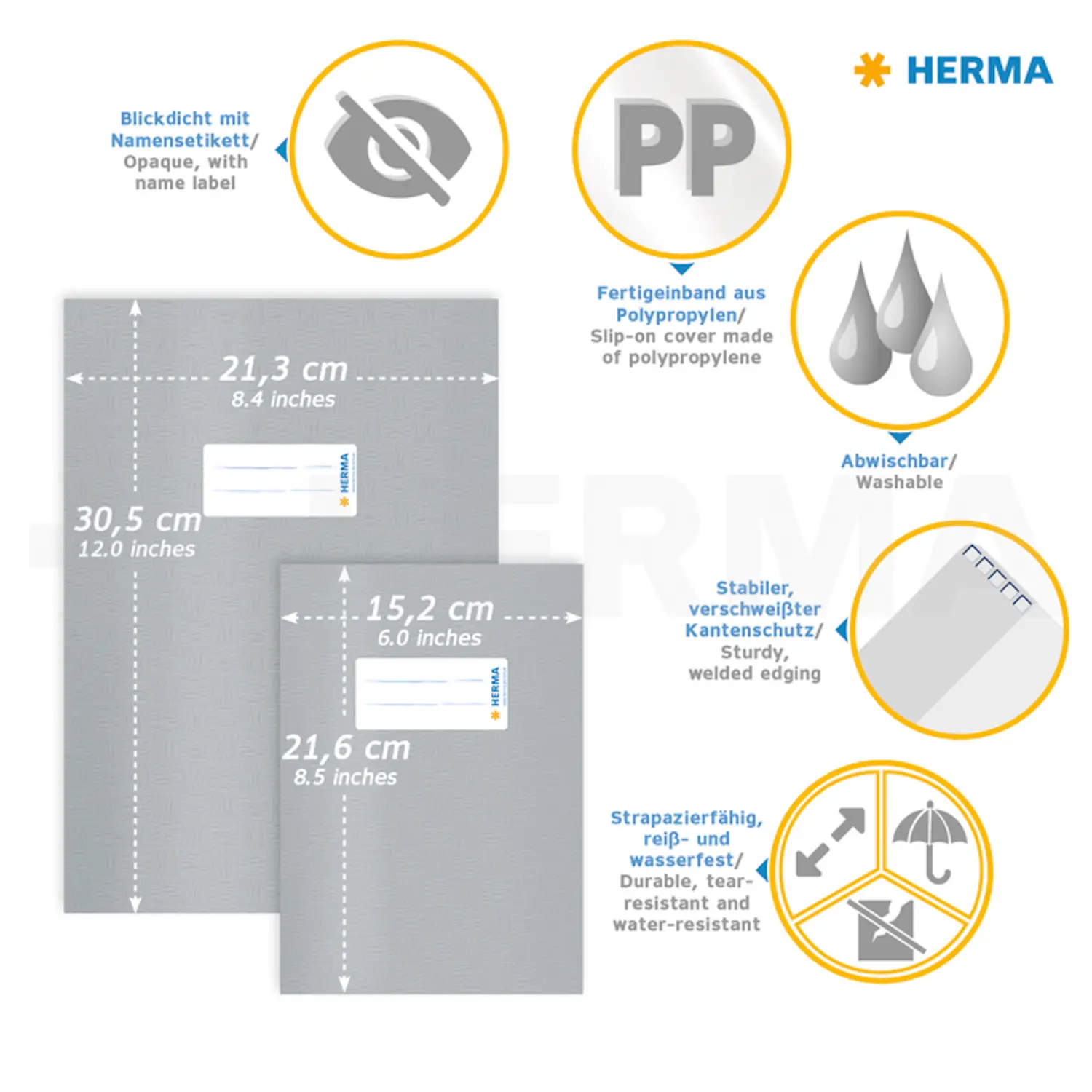 Exercise book covers made of polypropylene film, with fine line texture, solid finished, with inscription label.