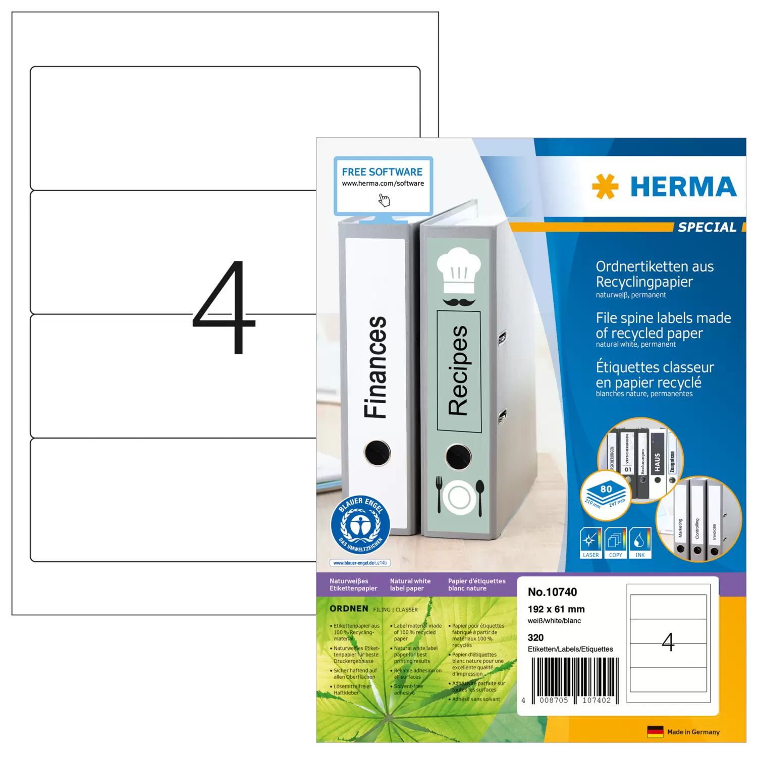 File labels A4, 192 x 61 mm, natural-white, recycled, for wide files (short)