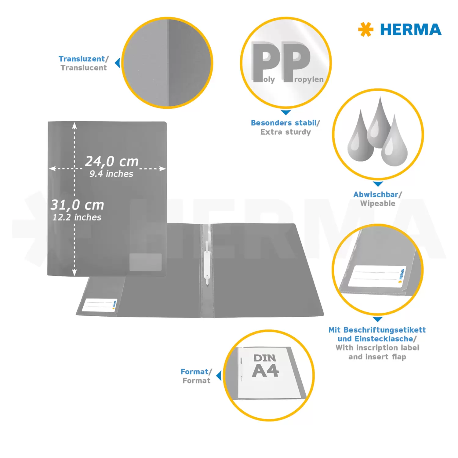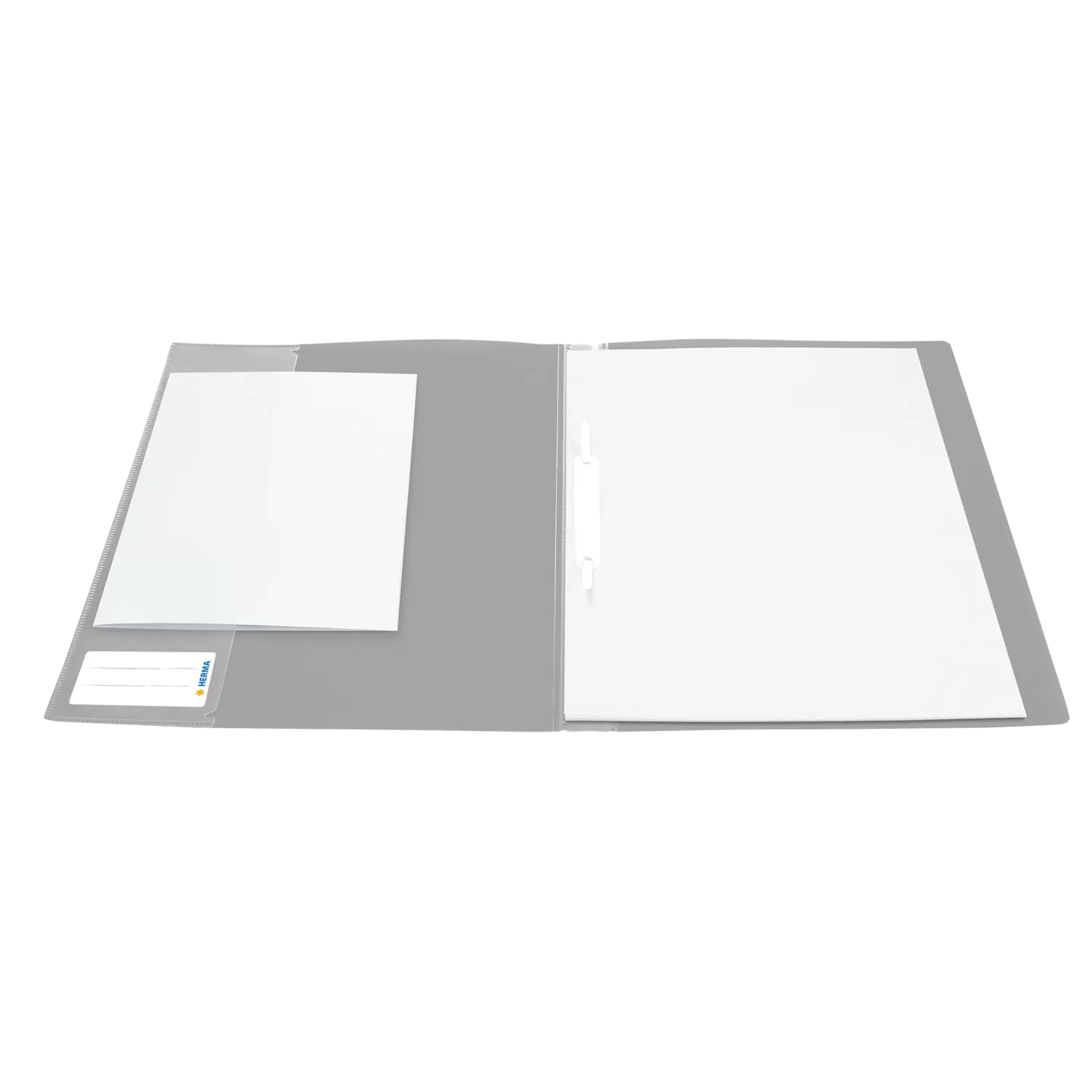 This translucent grey flat file made of environmentally friendly polypropylene film is ideal for abolishing disorder in everyday life. Loose sheets, important documents and notes can all be quickly organised and stored. The robust metal fastening clip holds A4-size sheets securely in place, and loose sheets can be tucked into the practical interior pocket. Sort and file your documents in a tidy manner and take them to the office, to school or to the university. This flat file is light and slim, allowing you to save space in storage and transport. An inscription label on the front can display important information, such as your name or a description of the contents. The contents are also well protected: the cover is made of water-resistant, wipeable plastic.