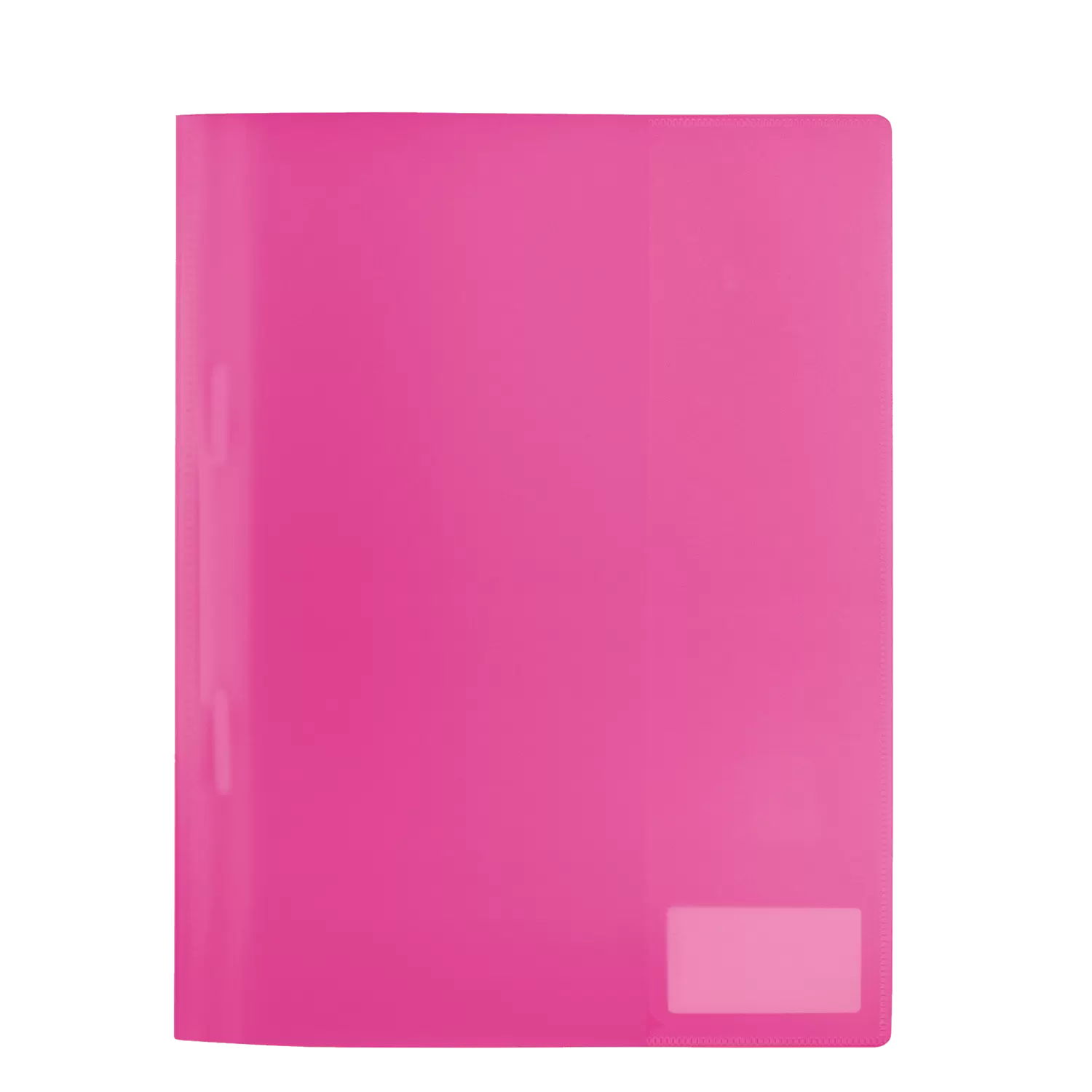 - Flat files for A4 sheets, made of strong, translucent, environmentally friendly polypropylene film with metal fastening clip, in 14 colours, with inscription label and interior pocket