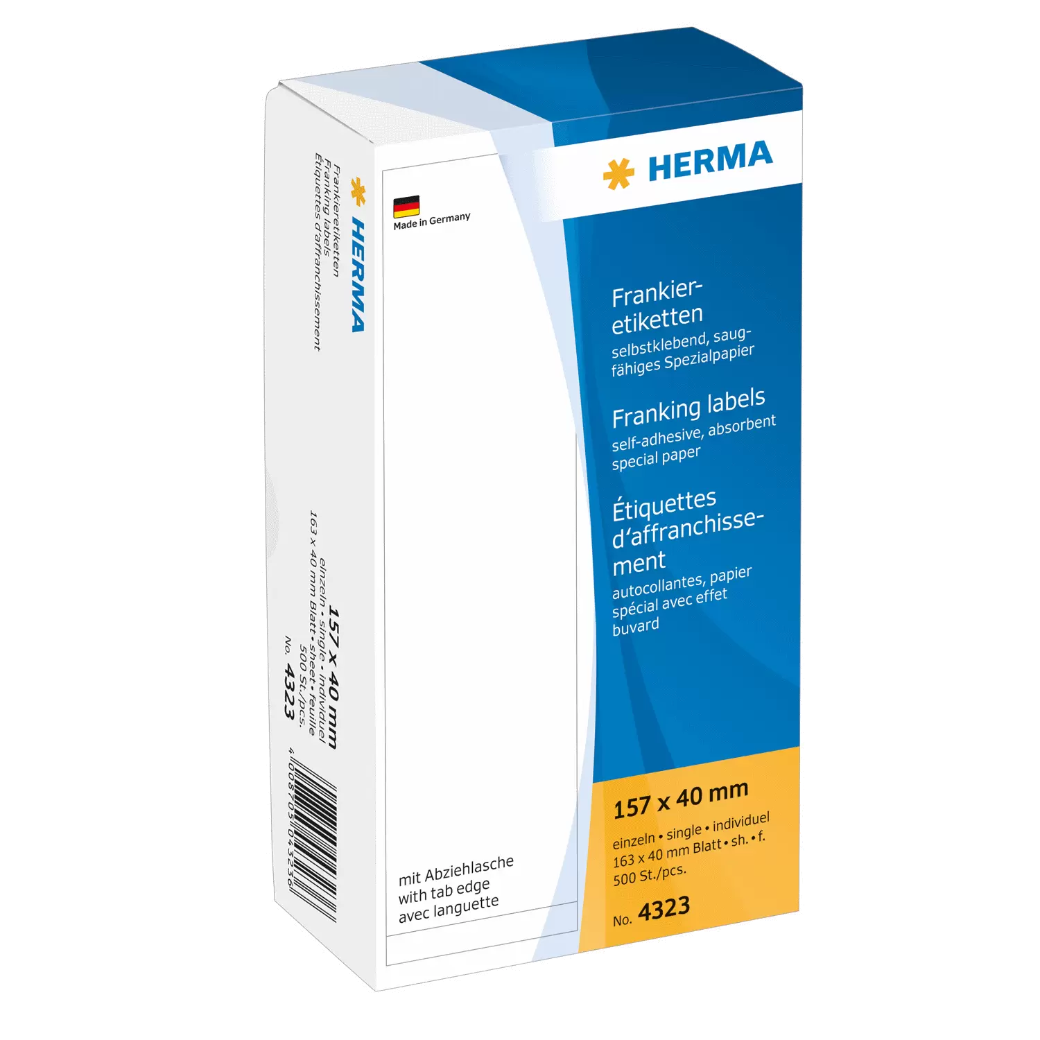 Franking labels, single, with peel-off tab, 157 x 40 mm, permanent adhesion