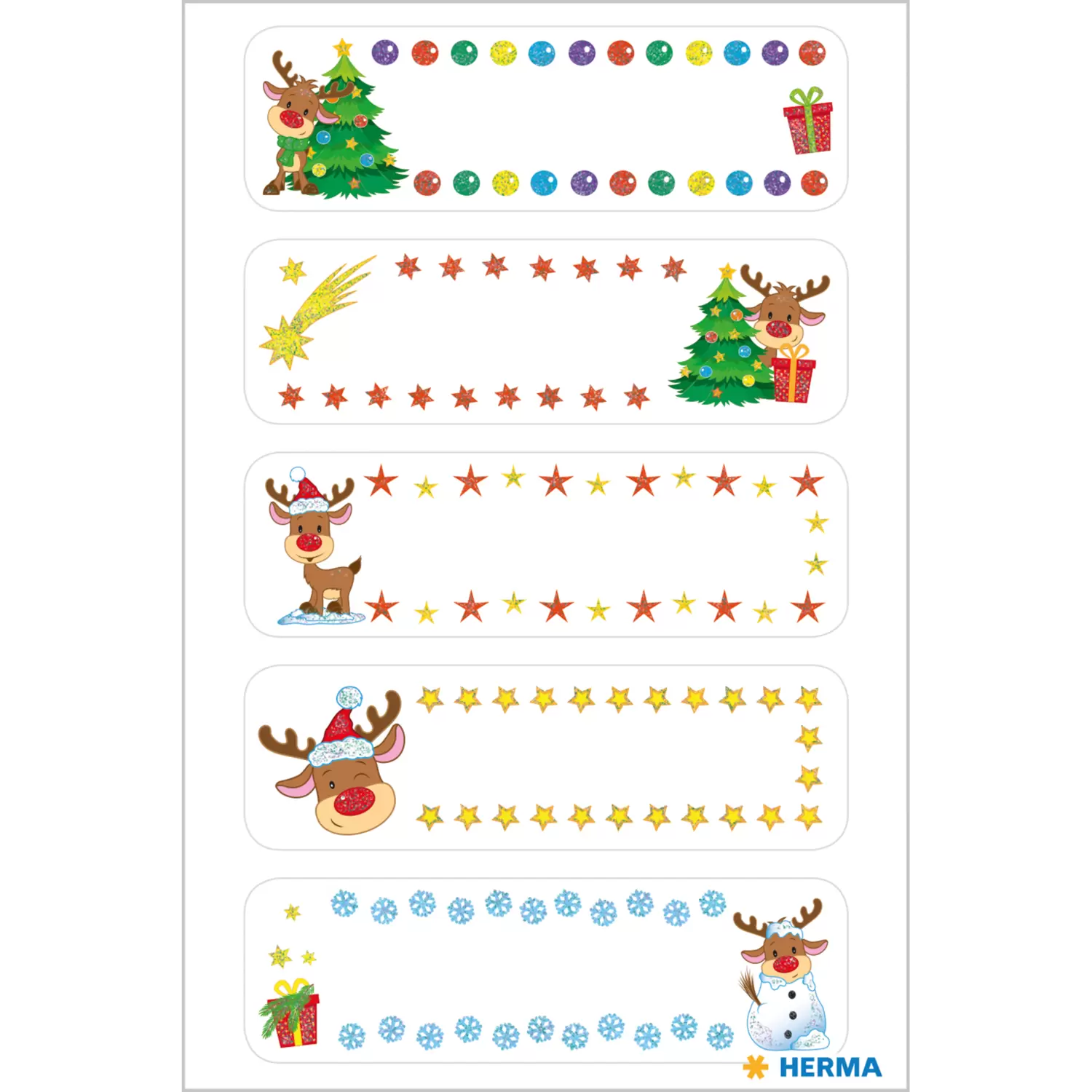 Beautiful glittery paper stickers for labeling gifts, lovingly designed with Christmas design Rudolph the reindeer. Ideal for embellishing gifts and Christmas mail. Perfect for a beautiful Christmas atmosphere. The stickers are printed on high-quality paper and finished with fine glitter. They are easy to remove from the backing paper, adhere firmly and for a long time on almost all surfaces.