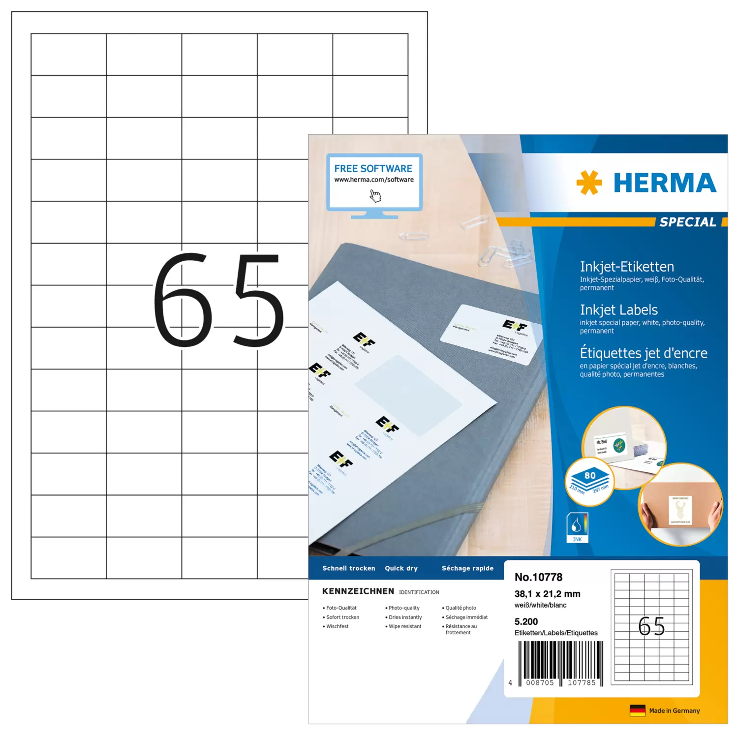 Inkjet labels A4, 38,1 x 21,2 mm, white, permanent adhesion