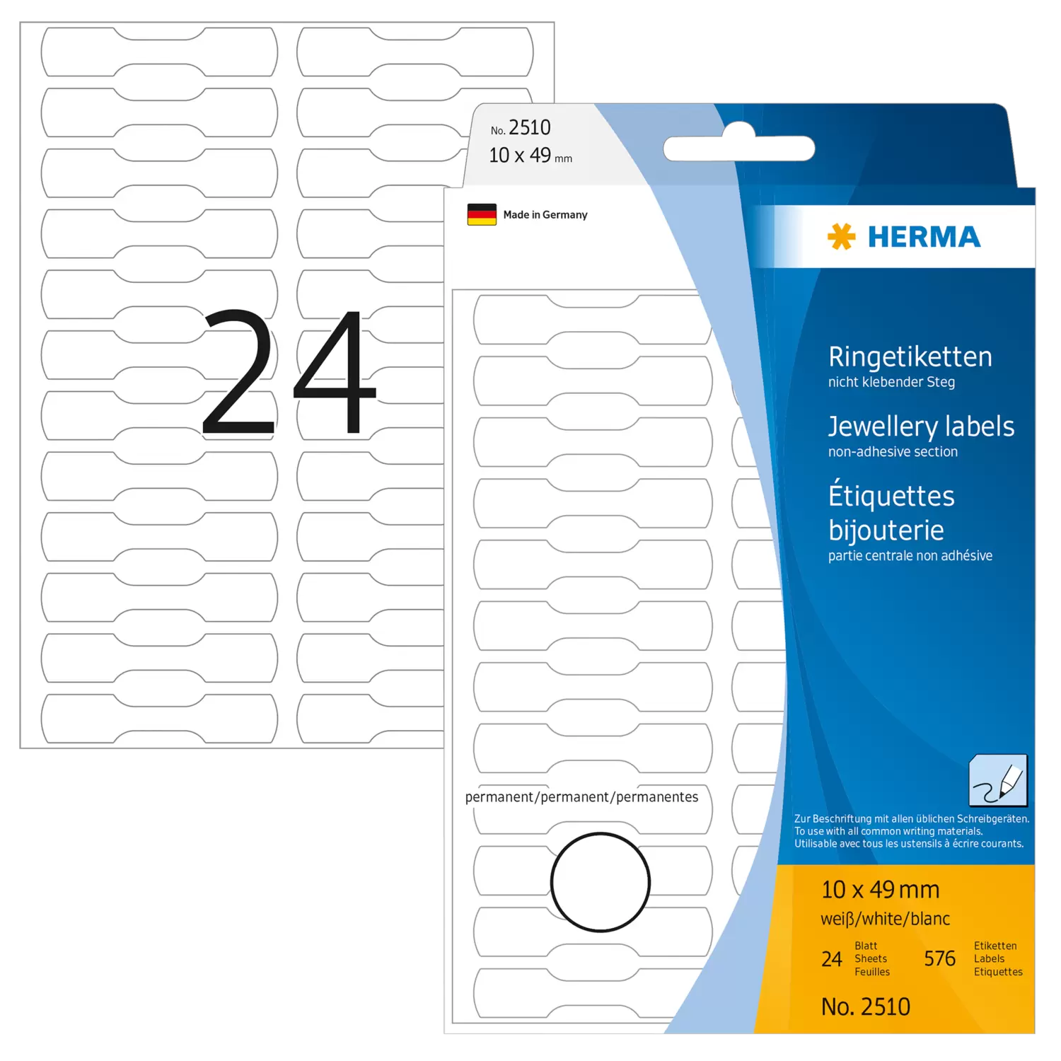 Multi-purpose ring labels 10 x 49 mm, white, semi-circle cardboard, for hand lettering