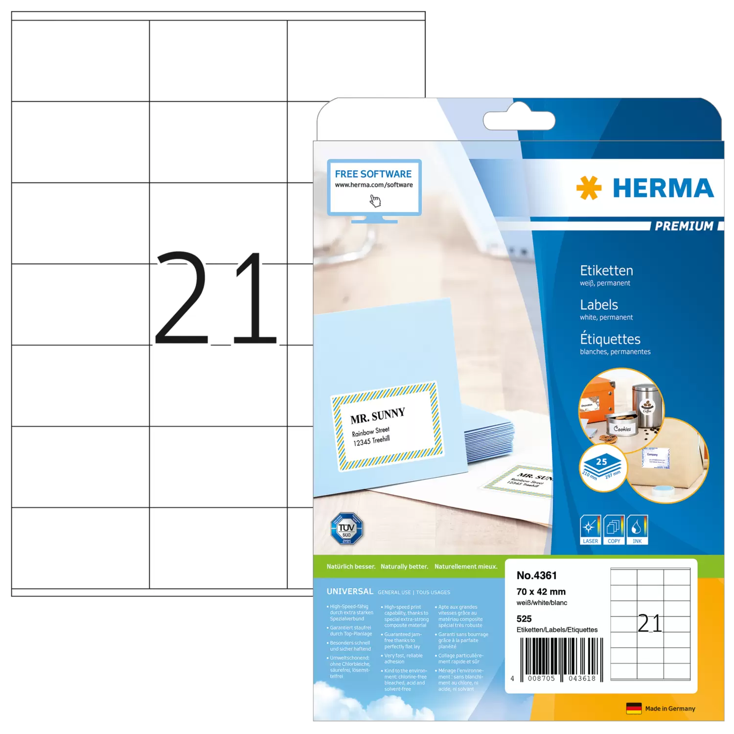 PREMIUM labels A4, 70 x 42 mm, white, permanent adhesion