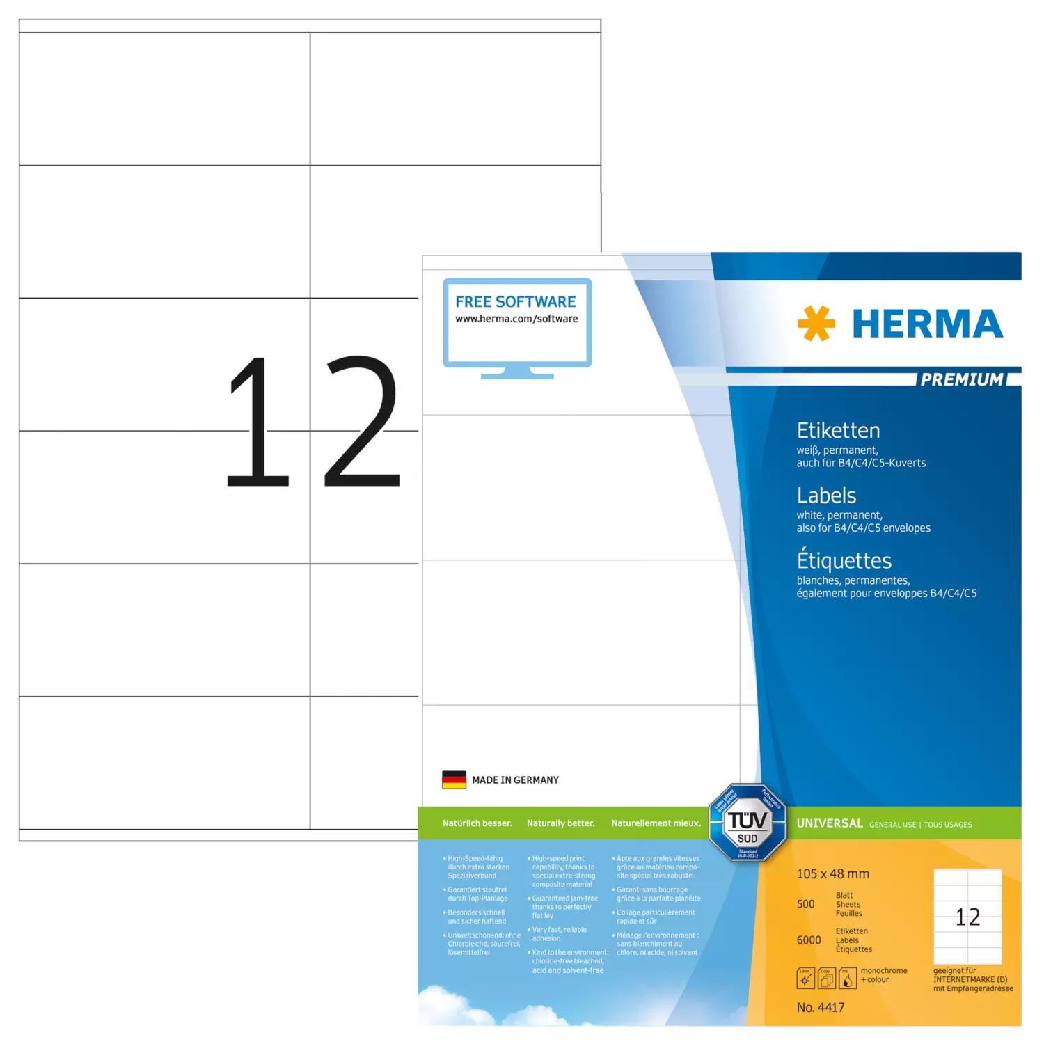 PREMIUM labels A4, 105 x 48 mm, white, permanent adhesion