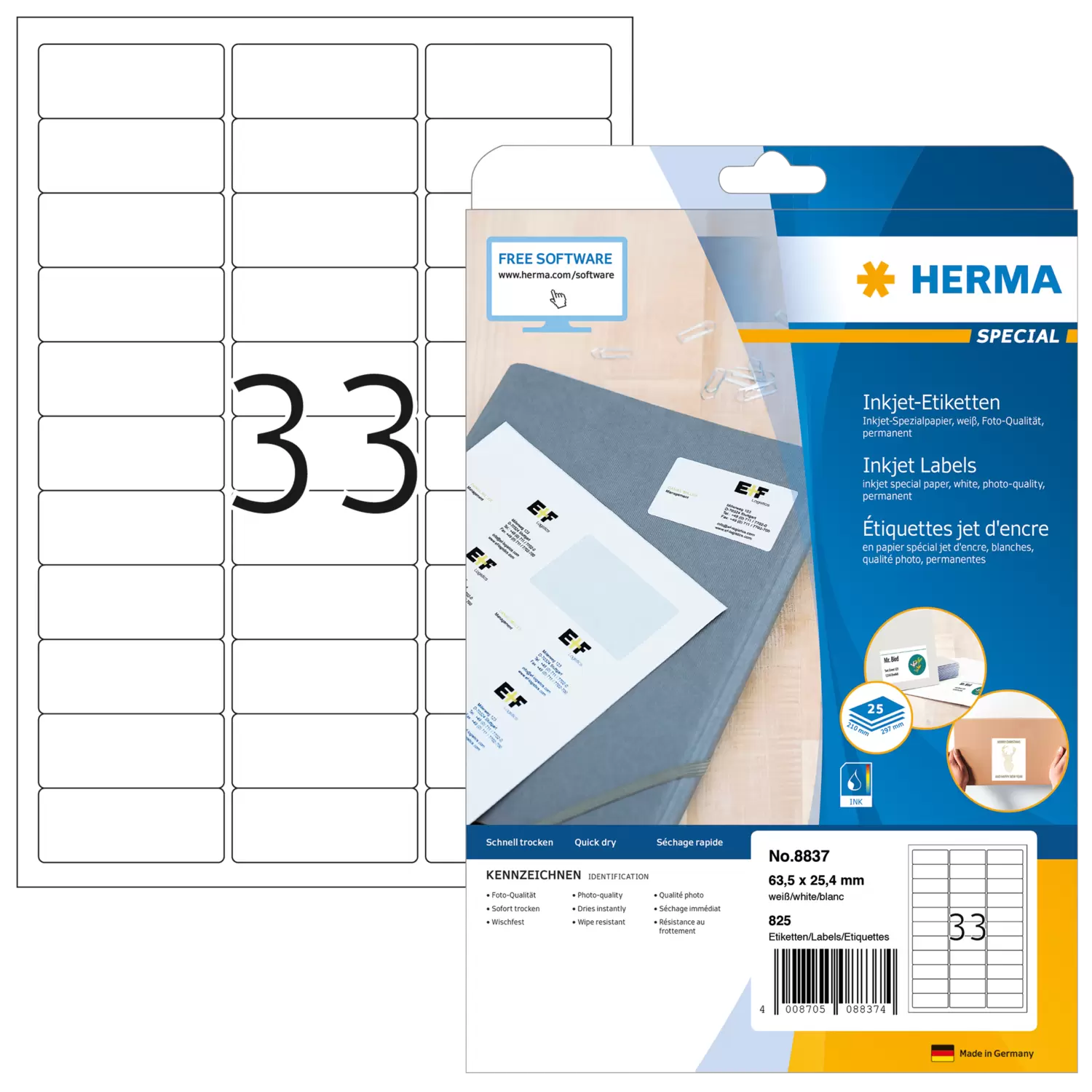 Inkjet labels A4, 63,5 x 25,4 mm, white, permanent adhesion