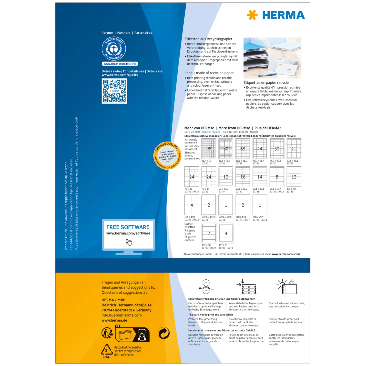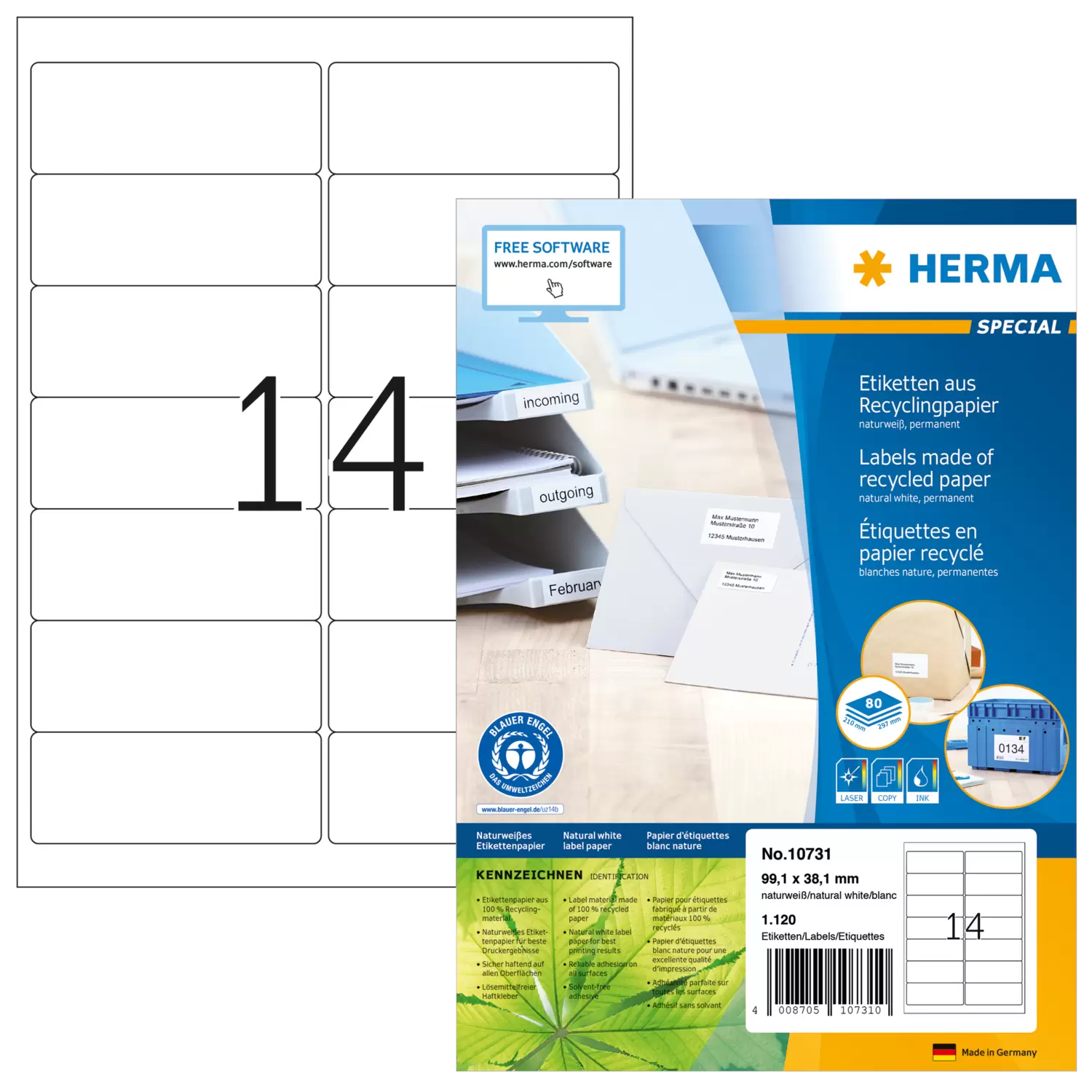 Address labels made of recycled paper A4, 99,1 x 38,1 mm, white, permanent adhesion