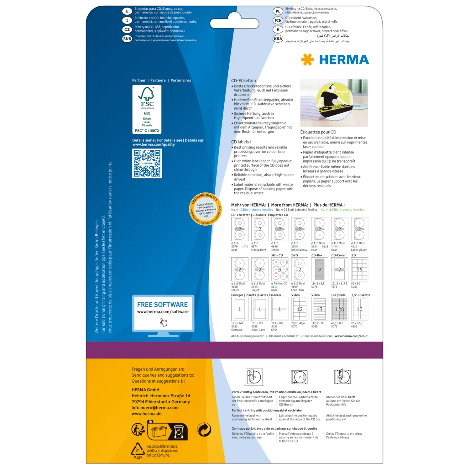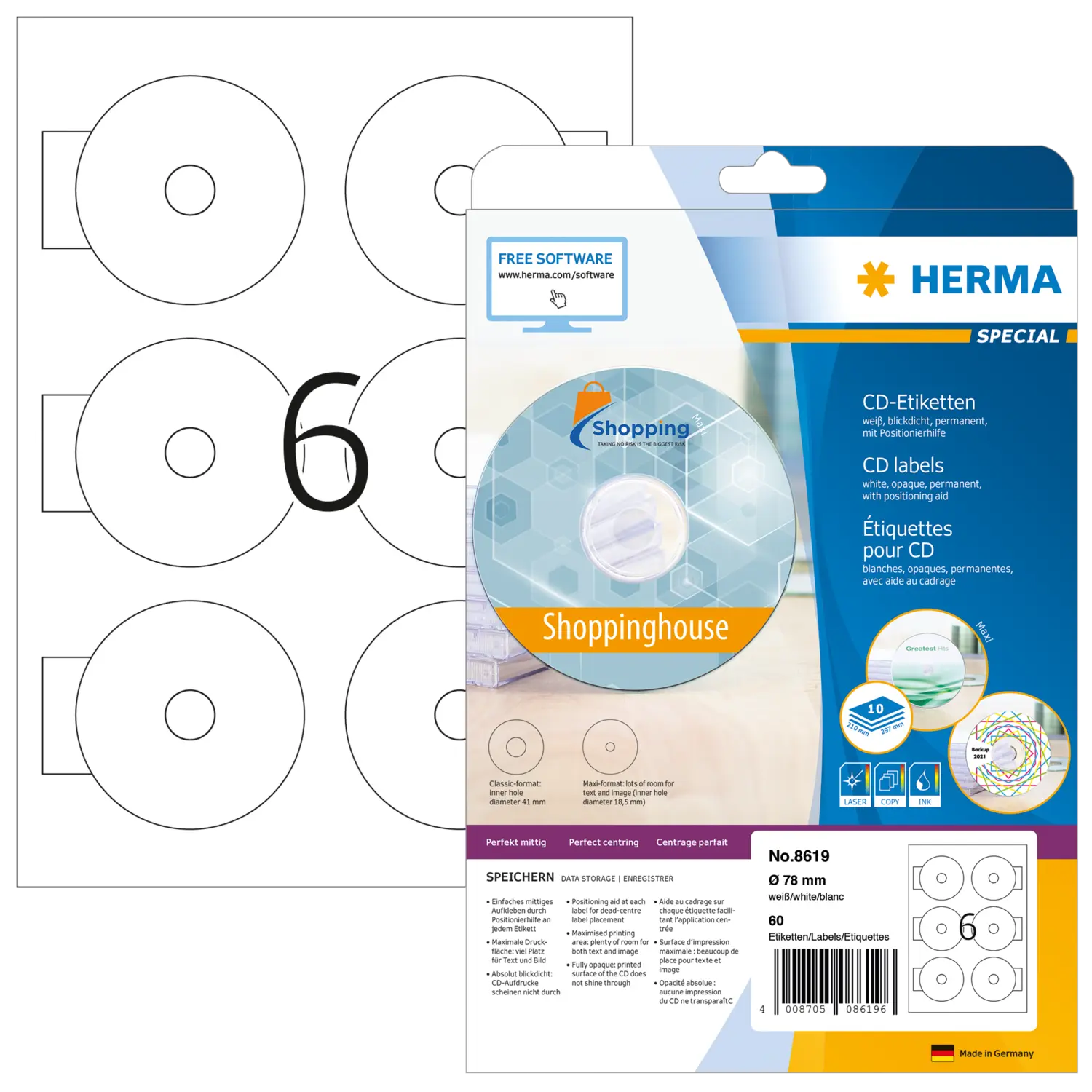 CD labels Mini A4, Ø 78 mm, white opaque, permanent adhesion