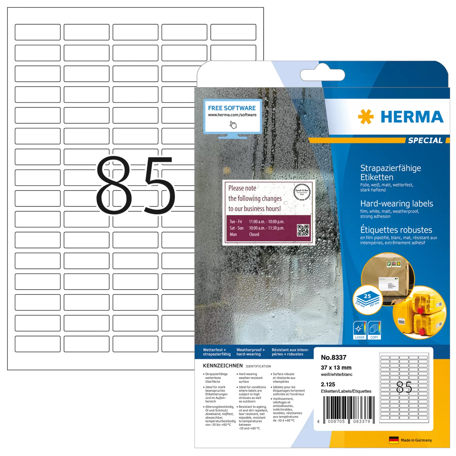 Weatherproof film labels A4, 37 x 13 mm, white, extremely strong adhesion