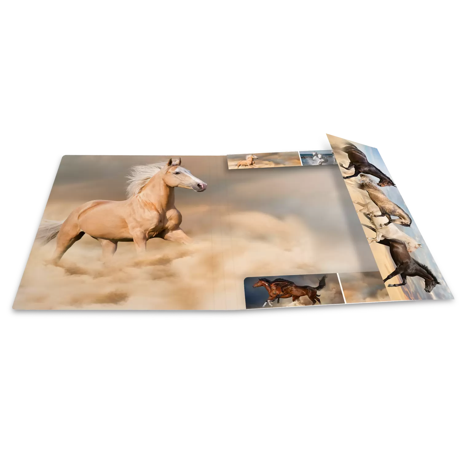 Elasticated folder with elastic band and 3 flaps. Made of sturdy cardboard, size A4. Ideal for storing loose papers.