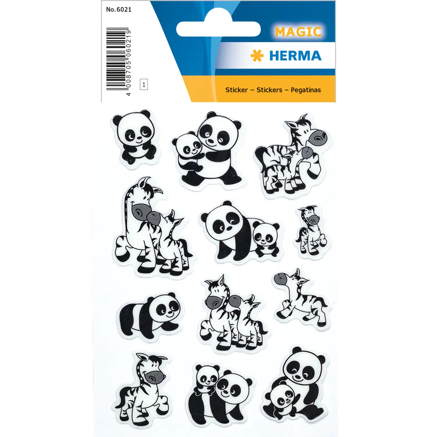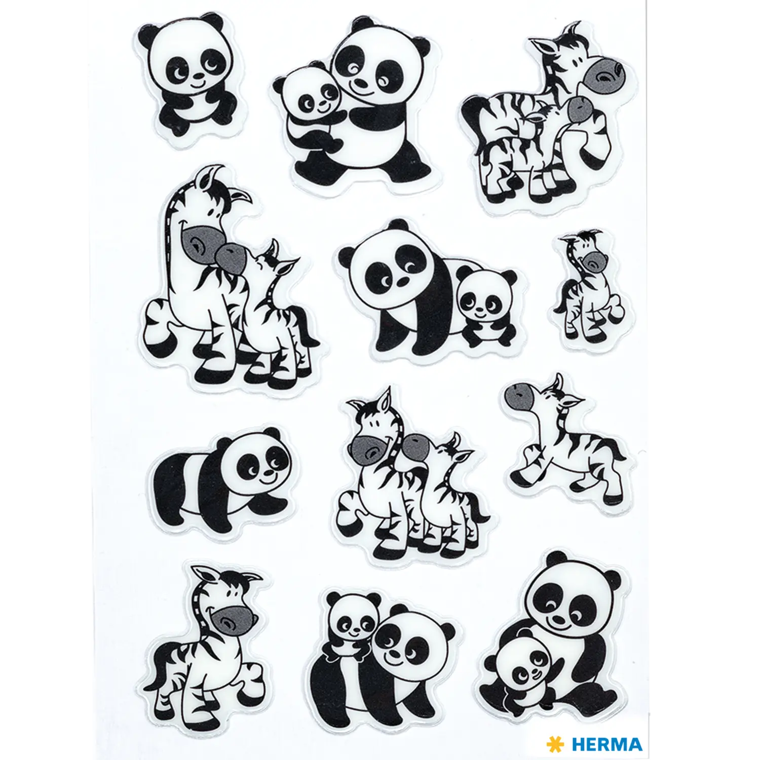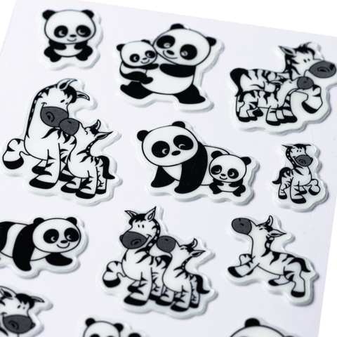 Stickers panda and zebra families, transpuffy