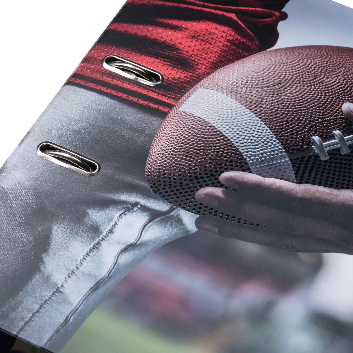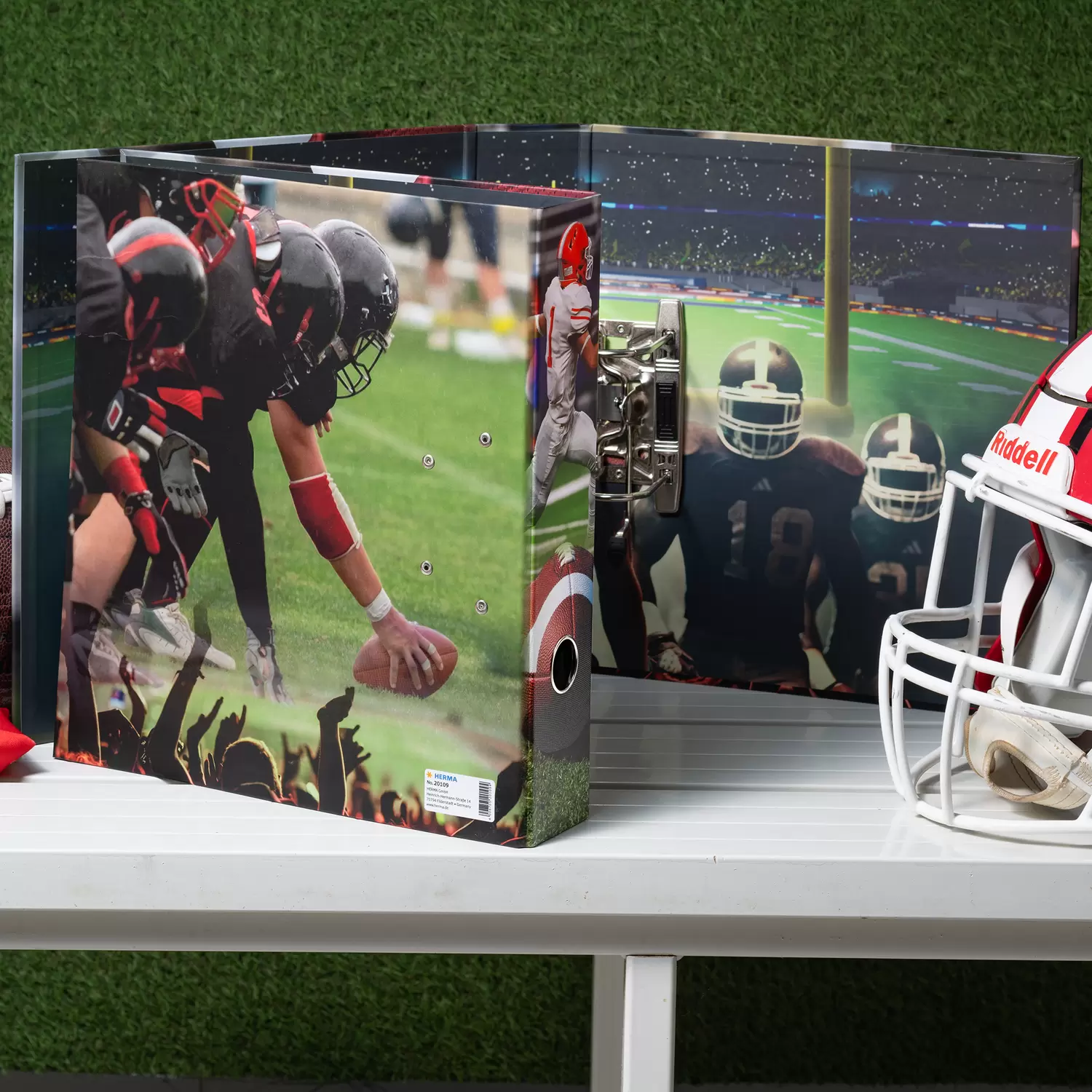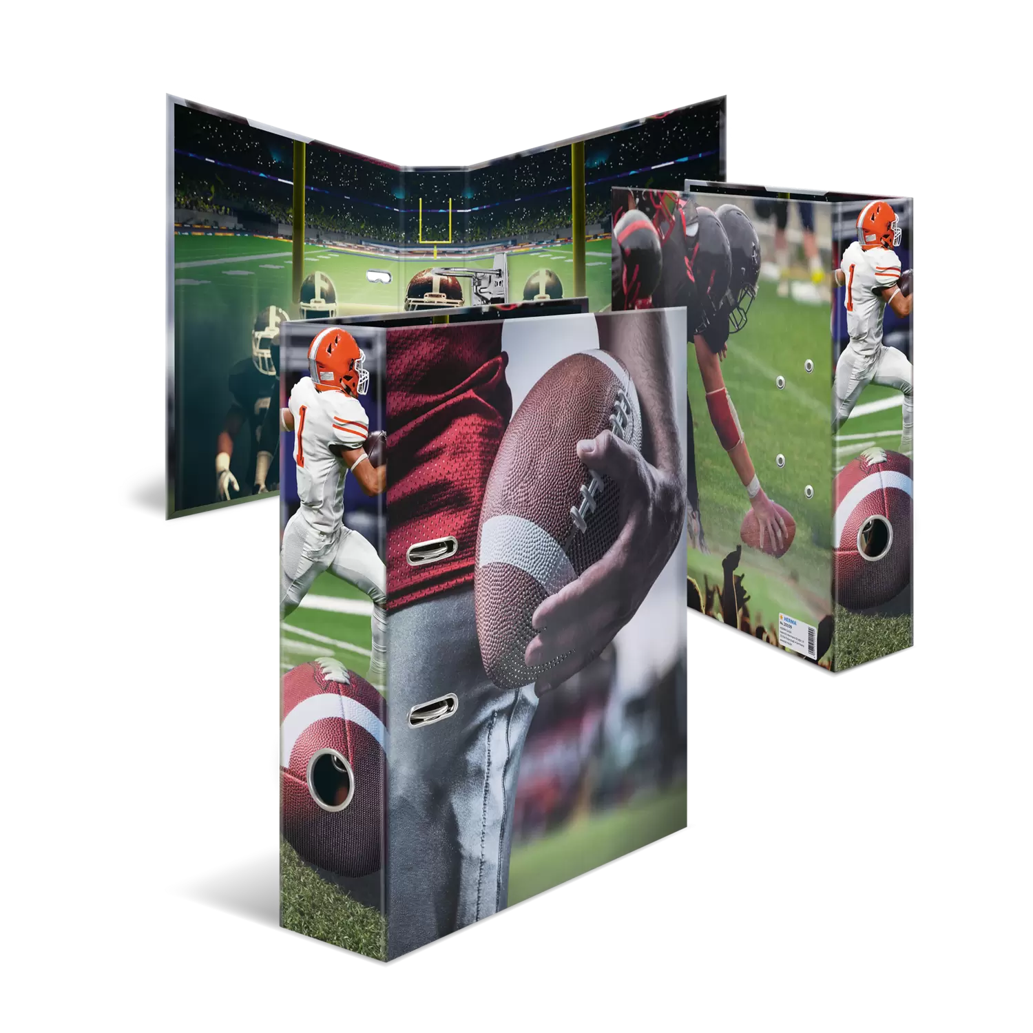 For real American football fans: This high-quality, refined file with authentic American football motifs of the SPORT series brings the dynamism and team spirit of the sport directly to your desk! Just like the sport itself, the file impresses with its robustness, strategy and versatility. With its sturdy construction, high-quality lever arch mechanism and premium workmanship, it ensures perfect organisation, whether at school, in the office or at home. For all those who value strong performance and teamwork - this file is a must-have for everyday use!