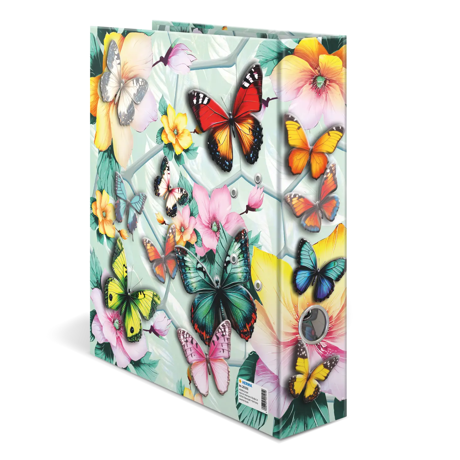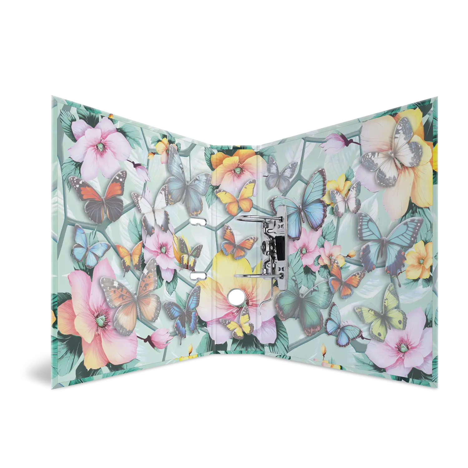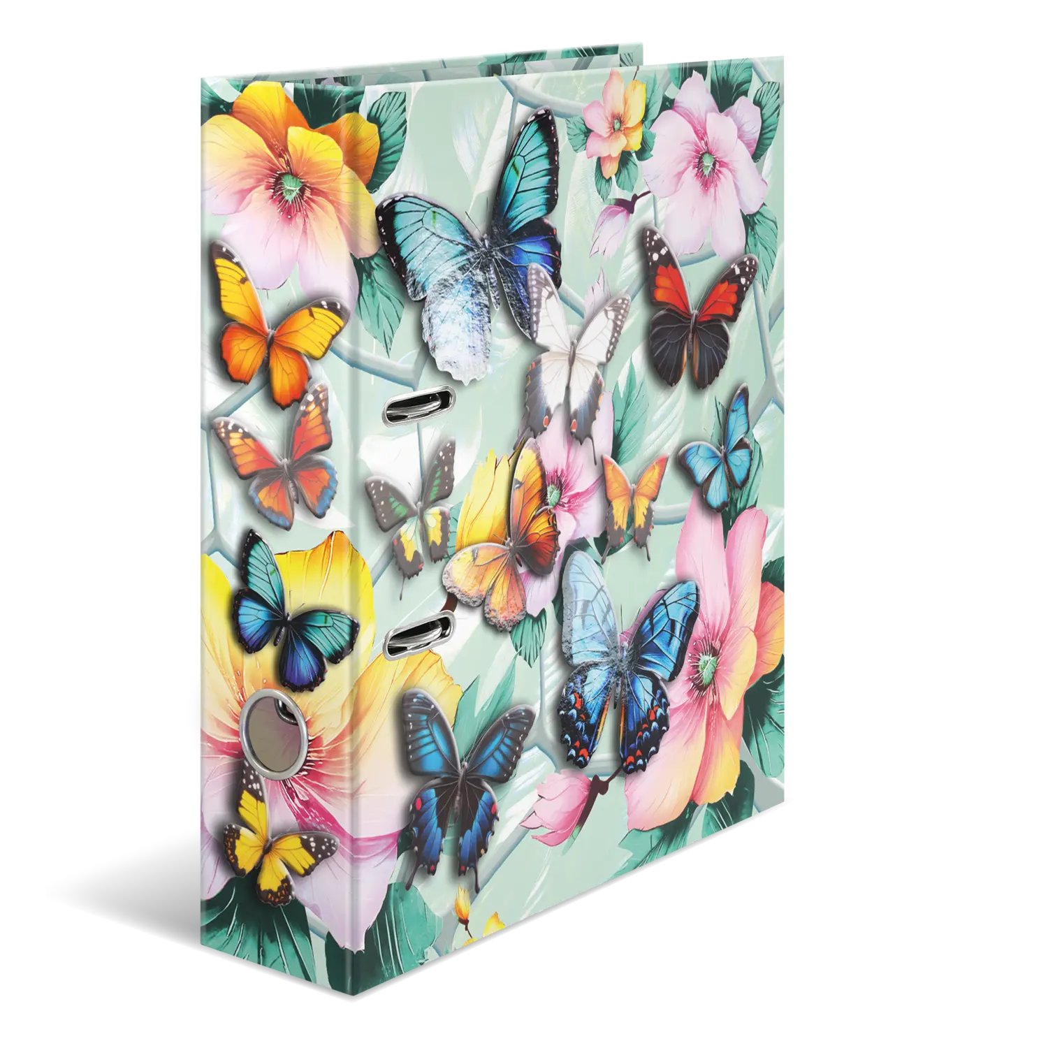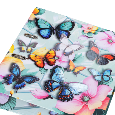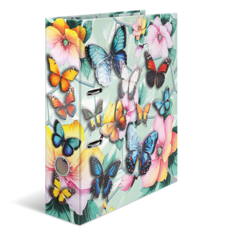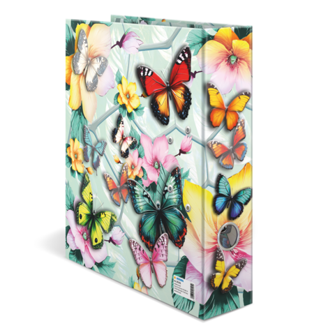 Welcome to the dream garden: delicate flowers combined with elegant butterflies in beautiful pastel colors. This motif file is an absolute eye-catcher, created with great love and attention to detail. The delicate butterflies on the outside of the file almost come to life thanks to the bright colors and shiny foil finish. From bright blue to sunny yellow to delicate pink. Every nature lover's heart will beat faster here. The file is made of sturdy cardboard and features high-quality workmanship, inner print and a sturdy lever arch mechanism. It guarantees optimal storage of documents and transparent sheets for optimal organization at home, at school, at university or in the office. A real eye-catcher on the shelf and on the desk.