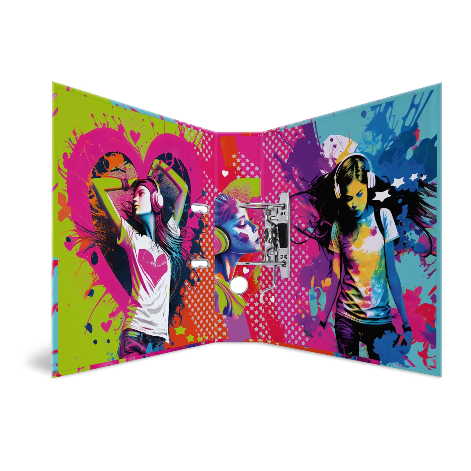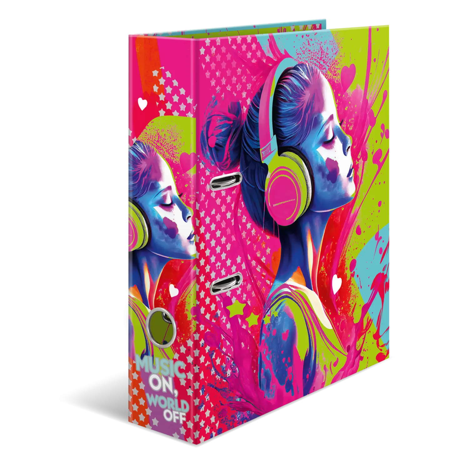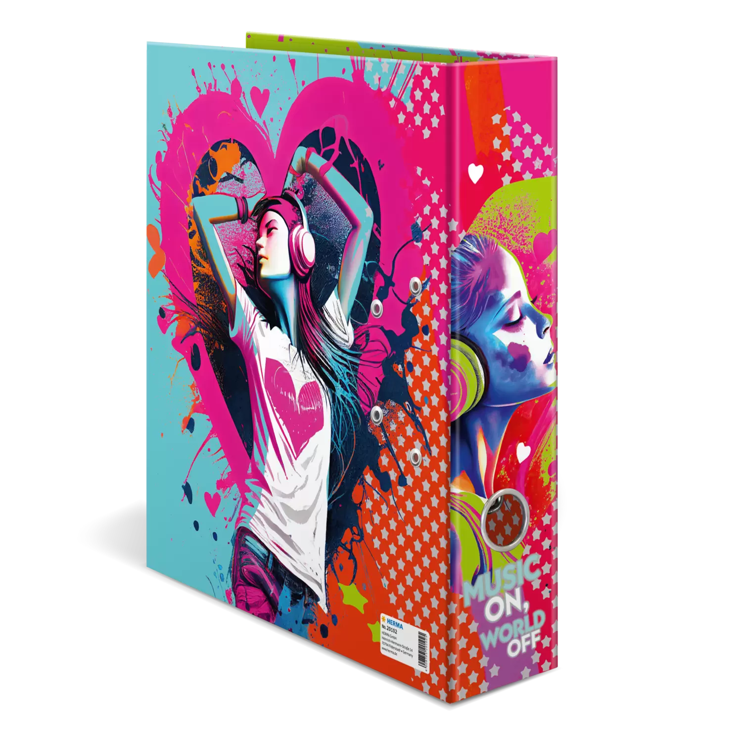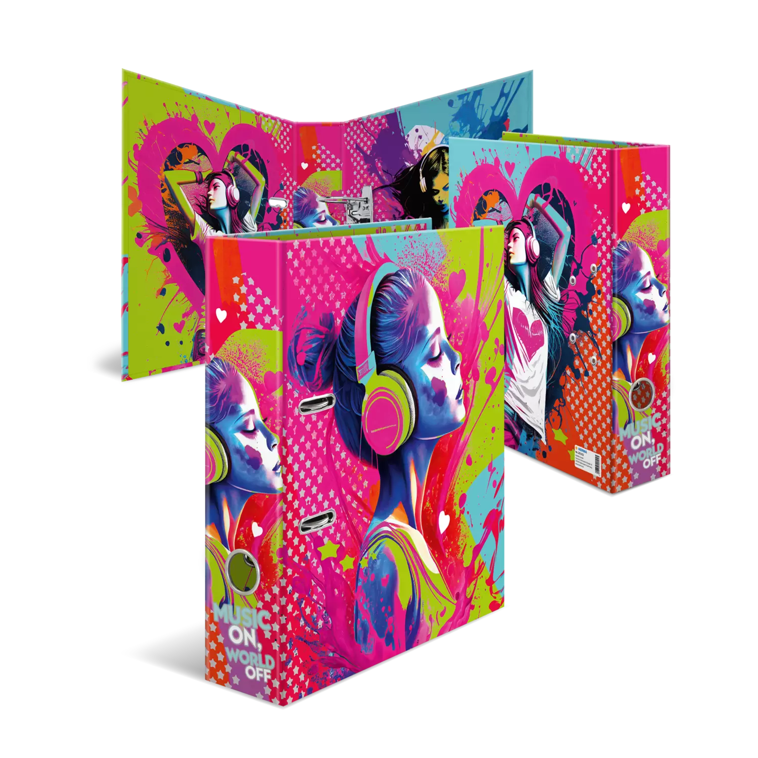 Music makes life more exciting! With its bright and colourful design "Music Girl" this motif file is a real eye-catcher that immediately spreads good mood. The file is made of sturdy cardboard with a high-quality workmanship, inner print and stable lever mechanism. It guarantees optimal storage of documents and transparencies for optimal order at home, school, university or office. A real eye-catcher on the shelf and on the desk.