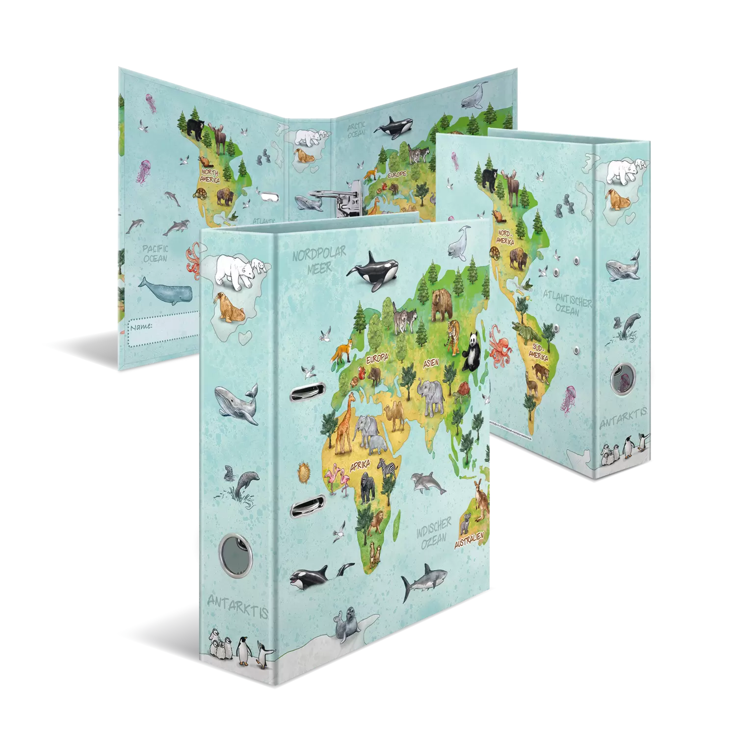 This makes learning fun! The motif file World Map is, as the name suggests, printed with a world map in a child-friendly design. It also features a variety of animals from the different continents and oceans. By the way: the motif is also available as a desk pad. The file is made especially for the little ones: made of sturdy material, with great bright colours and a cute motif. Perfect for storing sheets and drawings.