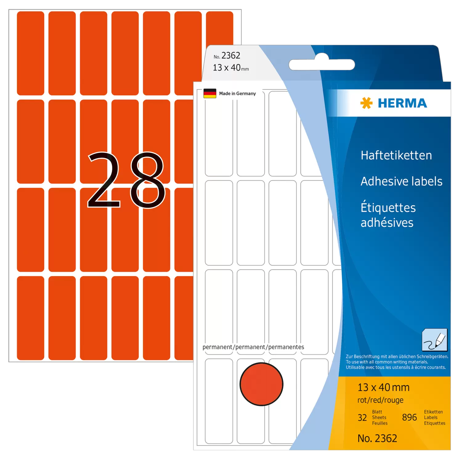 Multi-purpose labels, 13 x 40 mm, red, permanent adhesion, for hand lettering