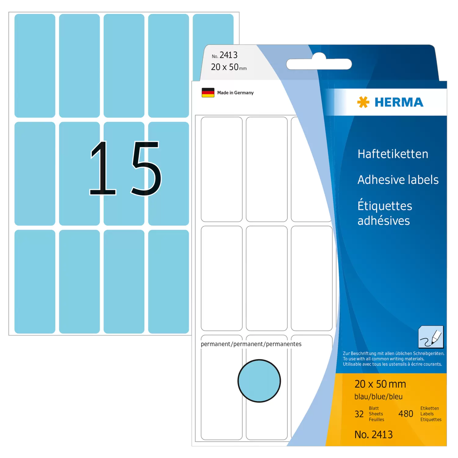 Multi-purpose labels, 20 x 50 mm, blue, permanent adhesion, for hand lettering