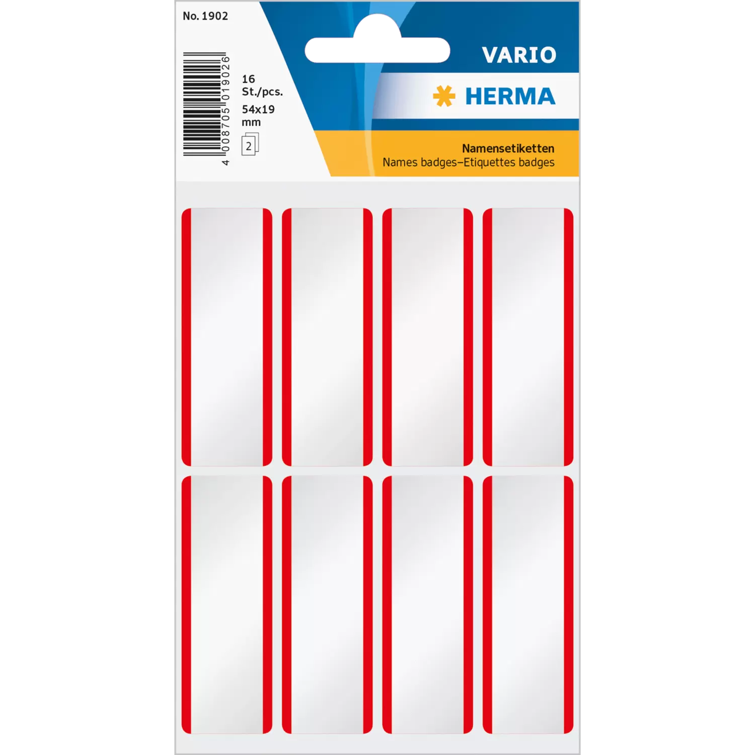Name labels 54x19 mm white/red stripes removable artificial silk 16 pcs.