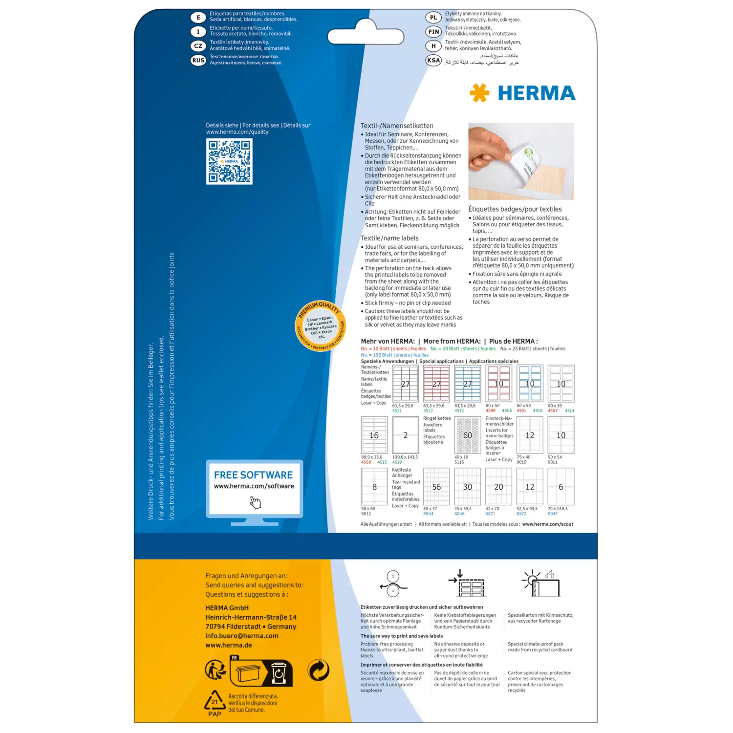 Name/textile labels removable A4, 80 x 50 mm, white, separable, acetate silk, printable
