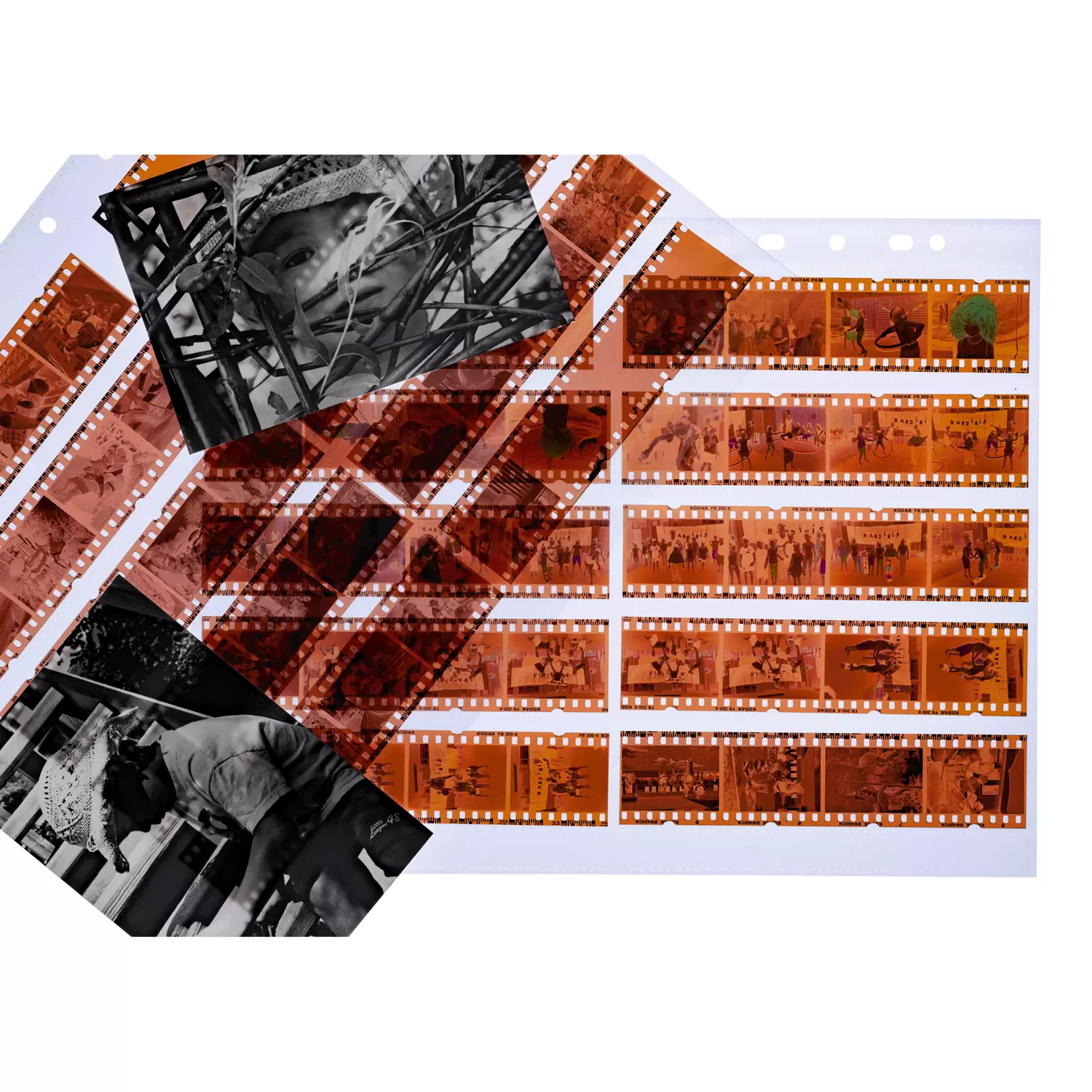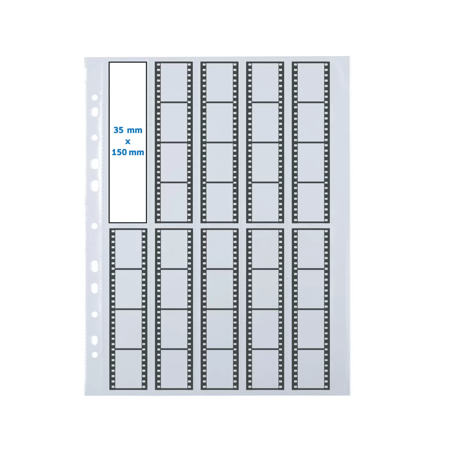 HERMA negative pockets for 35 mm negatives are ideal for neat and tidy storage and archiving of negative stripes. They are made of transparent, robust and plasticizer-free polypropylene and offer space per pocket for 10 stripes of 4 pictures each in 35 mm format. The particular feature are special safety tabs that prevent the negatives from falling out of the pockets. This makes it easy to insert and remove the negatives and yet they are optimally protected. One pocket measures approx. 24.5 x 31.5 cm and can be easily filed in files, ring binders or photobooks thanks to the Euro perforation. For optimal protection, we recommend the 4 ring version. There are 100 pockets in a pack and thus enough space for up to 1.000 stripes and 4.000 negatives.